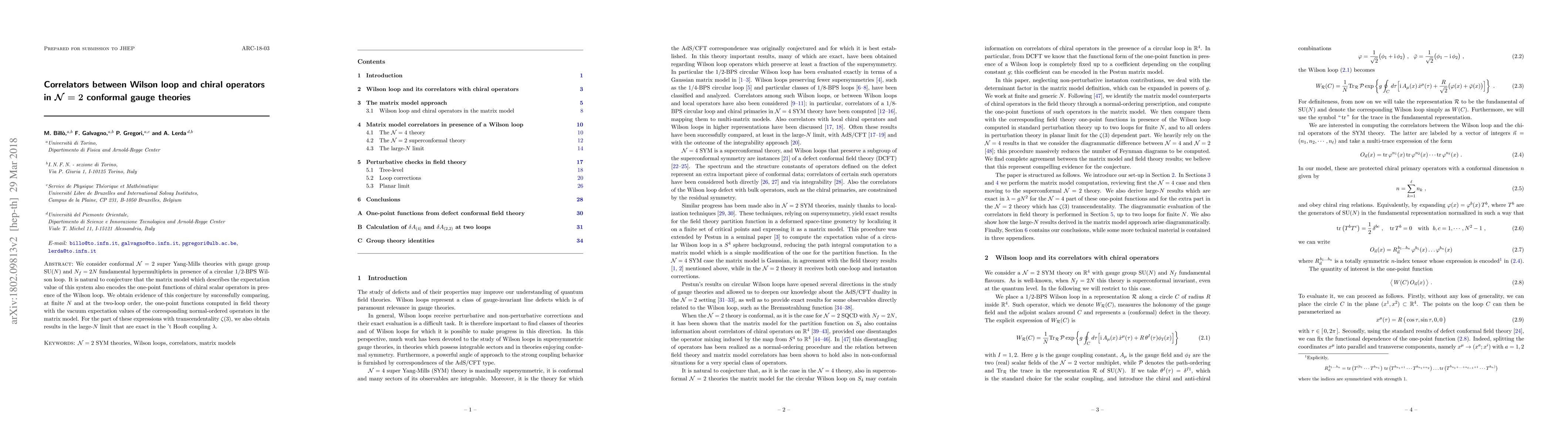 This paper investigates the relationship between Wilson loop and chiral operators in N=2 conformal gauge theories, confirming a conjecture that the matrix model describing the Wilson loop also encodes chiral operator one-point functions. The study provides evidence by comparing field theory computations with matrix model results at finite N and two-loop order.