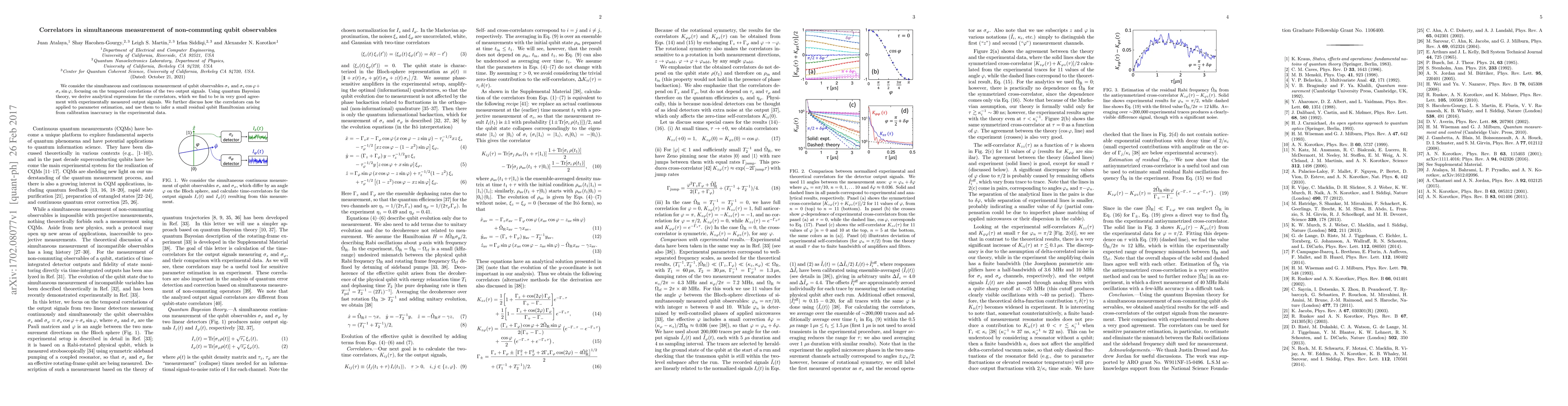 This paper investigates the simultaneous measurement of non-commuting qubit observables and derives analytical expressions for their temporal correlators using quantum Bayesian theory. The derived correlators show strong agreement with experimental data and are applied to parameter estimation, revealing a small residual qubit Hamiltonian due to calibration inaccuracies.