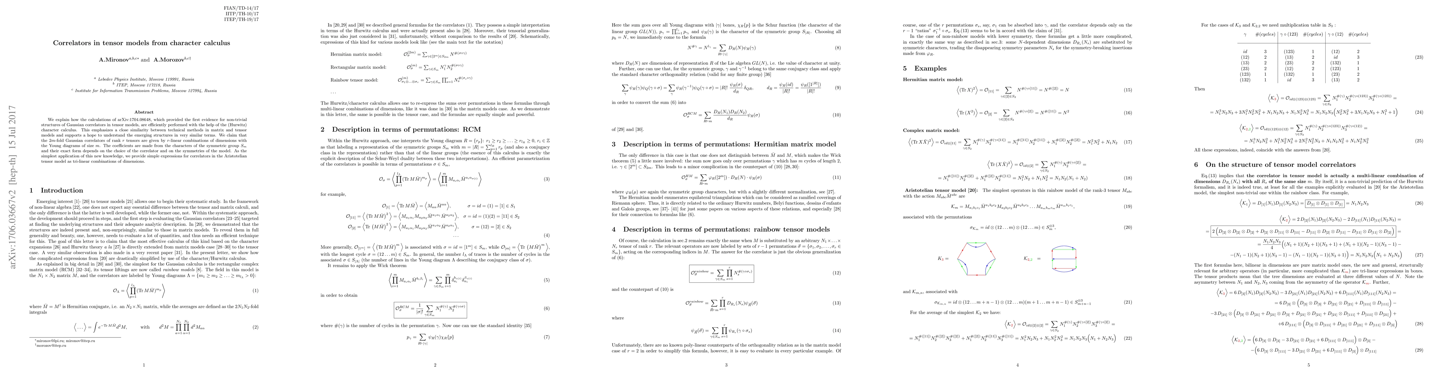 We explain how the calculations of arXiv:1704.08648, which provided the first evidence for non-trivial structures of Gaussian correlators in tensor models, are efficiently performed with the help of the (Hurwitz) character calculus. This emphasizes a close similarity between technical methods in matrix and tensor models and supports a hope to understand the emerging structures in very similar terms. We claim that the $2m$-fold Gaussian correlators of rank $r$ tensors are given by $r$-linear combinations of dimensions with the Young diagrams of size $m$. The coefficients are made from the characters of the symmetric group $S_m$ and their exact form depends on the symmetries of the model. As the simplest application of this new knowledge, we provide simple expressions for correlators in the Aristotelian tensor model as tri-linear combinations of dimensions.