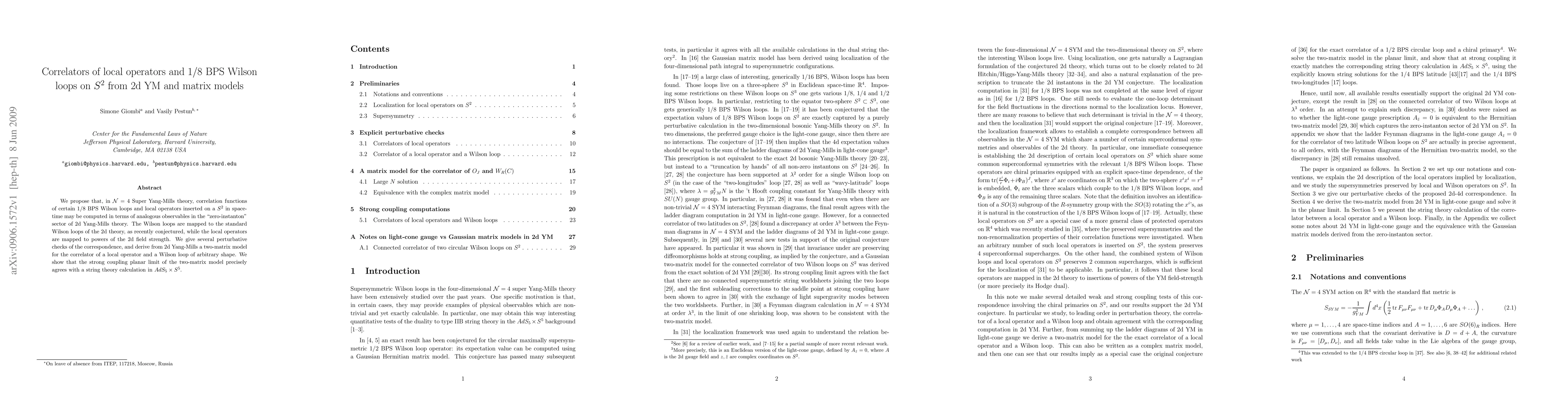 This paper proposes a correspondence between correlation functions of 1/8 BPS Wilson loops and local operators in N=4 Super Yang-Mills on S^2, and observables in the zero-instanton sector of 2d Yang-Mills theory. It provides perturbative checks and derives a two-matrix model from 2d Yang-Mills, showing agreement with string theory calculations in the strong coupling planar limit.