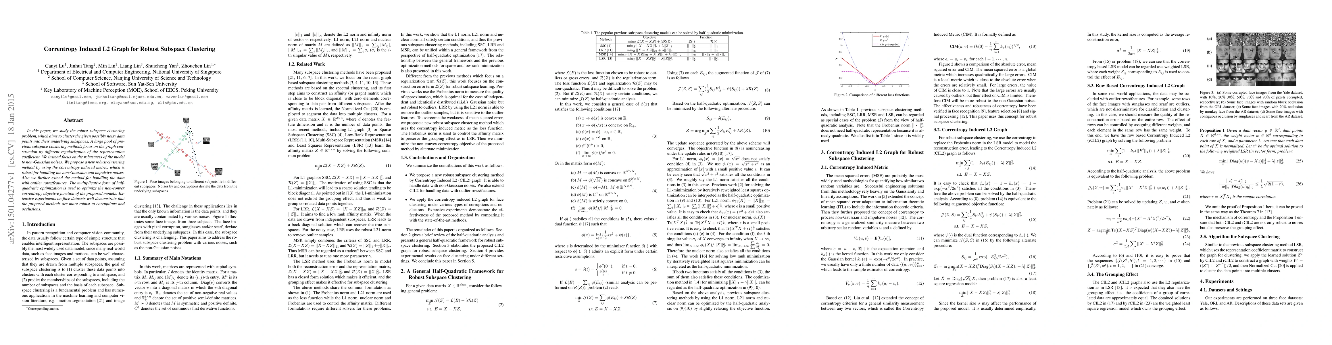 A new subspace clustering method is proposed that uses correntropy to handle non-Gaussian noises, achieving improved robustness against corruptions and occlusions on face datasets.
