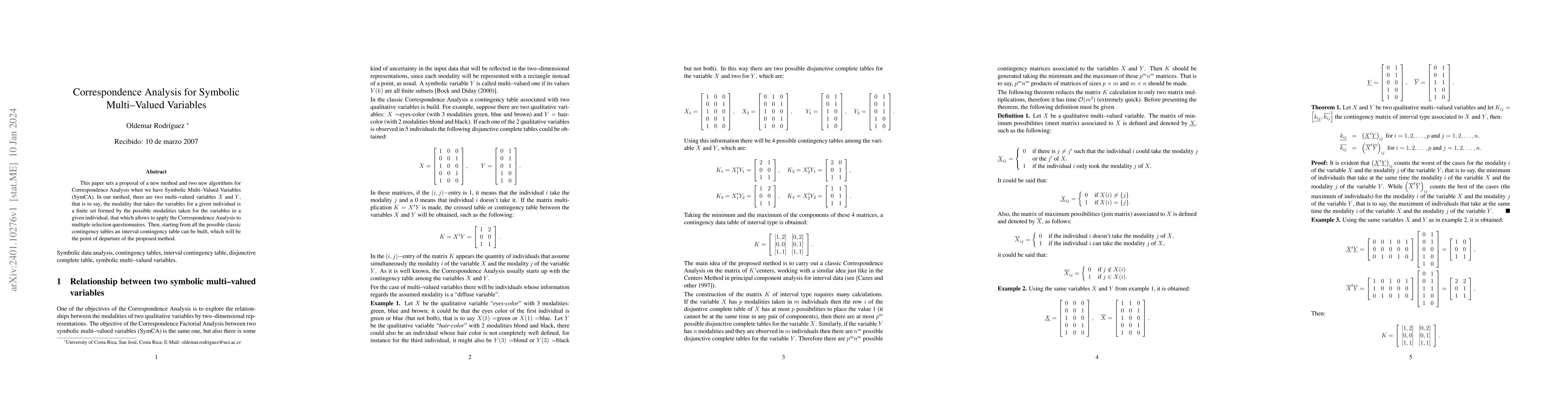 This paper introduces a new method and two algorithms for Correspondence Analysis (SymCA) for Symbolic Multi-Valued Variables, enabling analysis of multiple selection questionnaires through interval contingency tables derived from classic contingency tables.