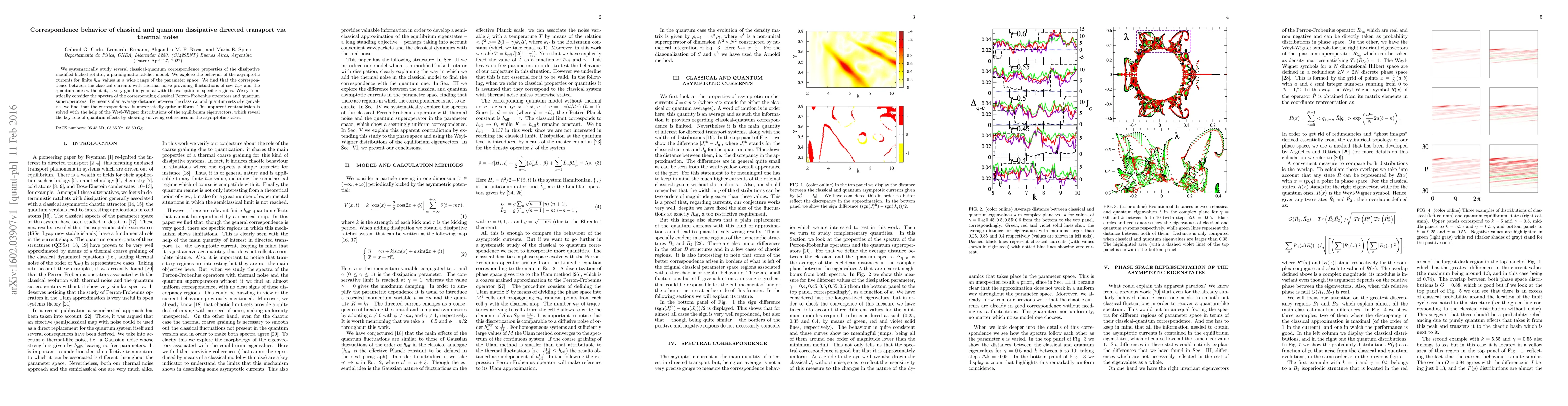 This paper investigates the classical-quantum correspondence in dissipative transport models, specifically the modified kicked rotator with thermal noise. It finds strong correspondence between classical and quantum currents, except in specific regions, and resolves this through analysis of Weyl-Wigner distributions, revealing quantum coherences in the asymptotic states.
