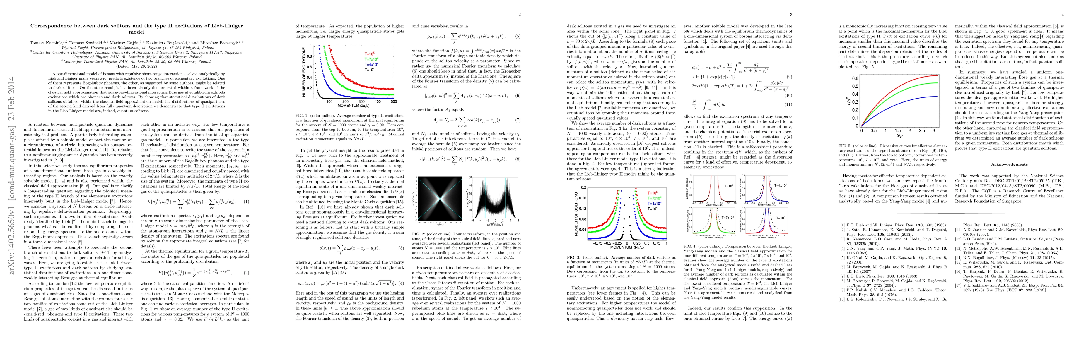 This paper demonstrates that the type II excitations in the Lieb-Liniger model, which predict two branches of elementary excitations, correspond to quantum solitons. It shows that statistical distributions of dark solitons from classical field approximation align with quasiparticle distributions from the quantum description, confirming the solitonic nature of these excitations.