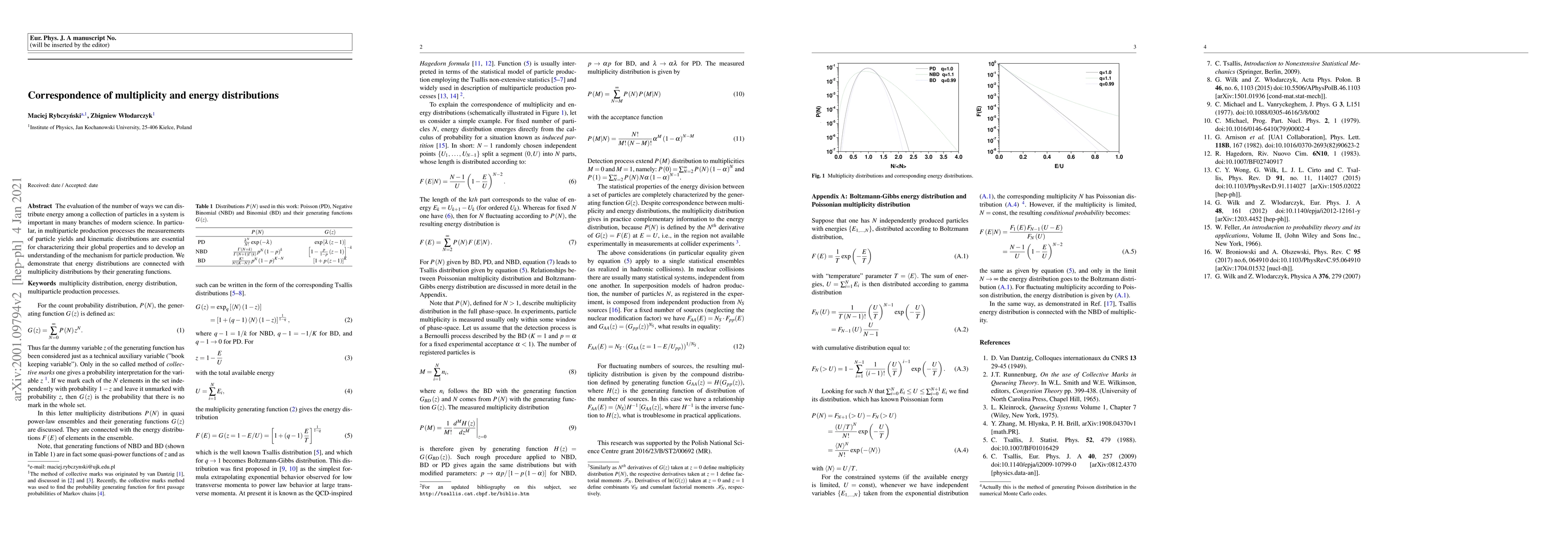The evaluation of the number of ways we can distribute energy among a collection of particles in a system is important in many branches of modern science. In particular, in multiparticle production processes the measurements of particle yields and kinematic distributions are essential for characterizing their global properties and to develop an understanding of the mechanism for particle production. We demonstrate that energy distributions are connected with multiplicity distributions by their generating functions.