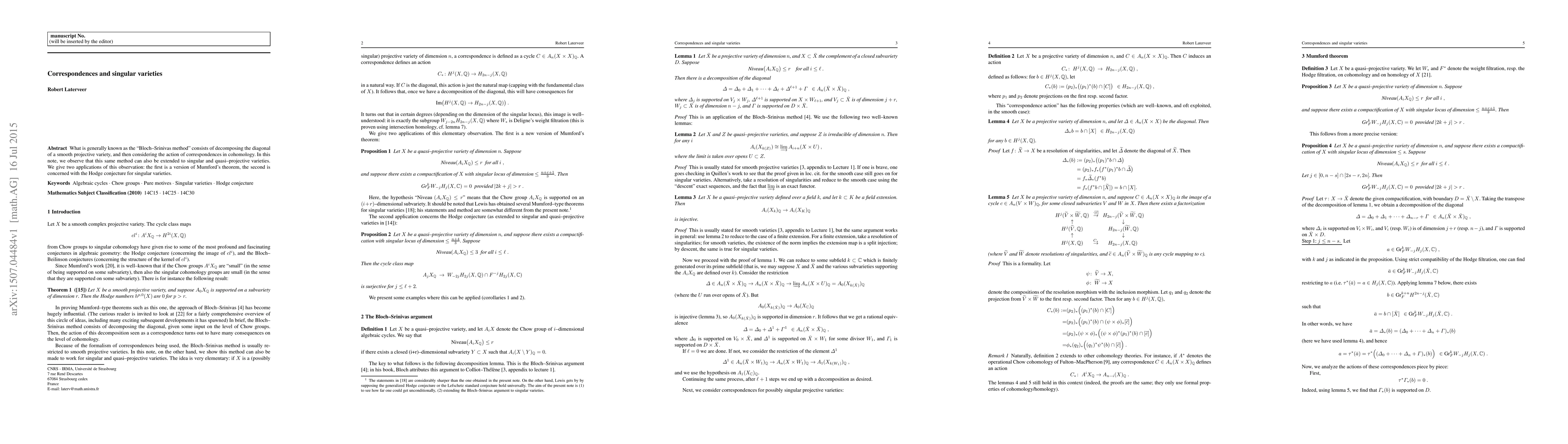What is generally known as the "Bloch--Srinivas method" consists of decomposing the diagonal of a smooth projective variety, and then considering the action of correspondences in cohomology. In this note, we observe that this same method can also be extended to singular and quasi--projective varieties. We give two applications of this observation: the first is a version of Mumford's theorem, the second is concerned with the Hodge conjecture for singular varieties.