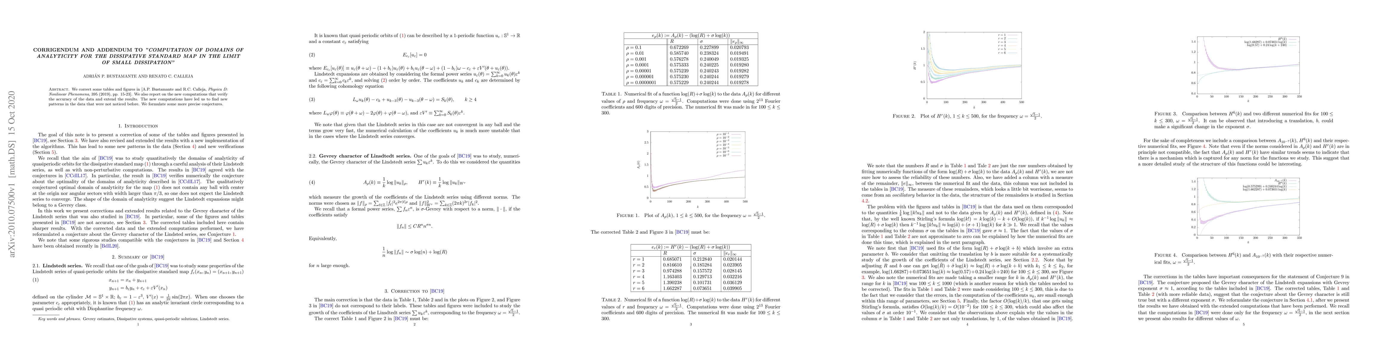 We correct some tables and figures in [A.P. Bustamante and R.C. Calleja, Physica D: Nonlinear Phenomena, 395 (2019), pp. 15-23, arXiv:1712.05476]. We also report on the new computations that verify the accuracy of the data and extend the results. The new computations have led us to find new patterns in the data that were not noticed before. We formulate some more precise conjectures.