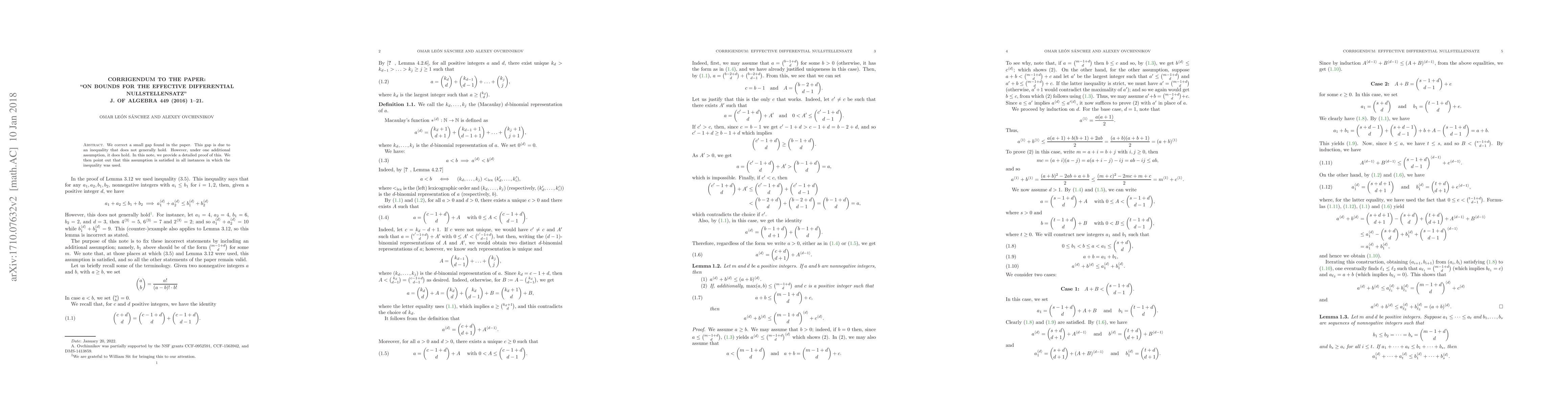 We correct a small gap found in the authors' paper 'On bounds for the effective differential Nullstellensatz' (J Algebra 449:1-21, 2016). This gap is due to an inequality that does not generally hold. However, under one additional assumption, it does hold. In this note, we provide a detailed proof of this. We then point out that this assumption is satisfied in all instances in which the inequality was used.