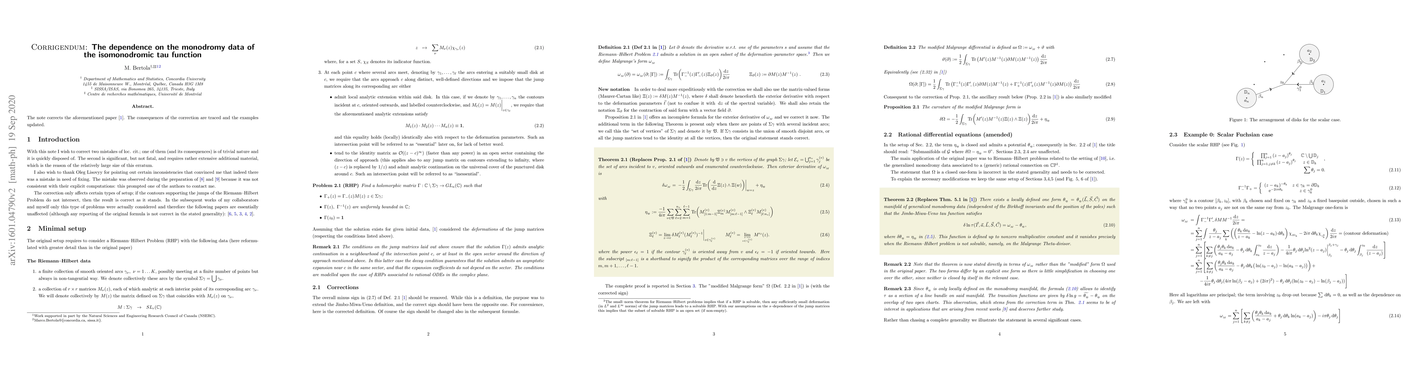 This paper corrects previous research on the tau function, focusing on its dependence on monodromy data, with updated examples.