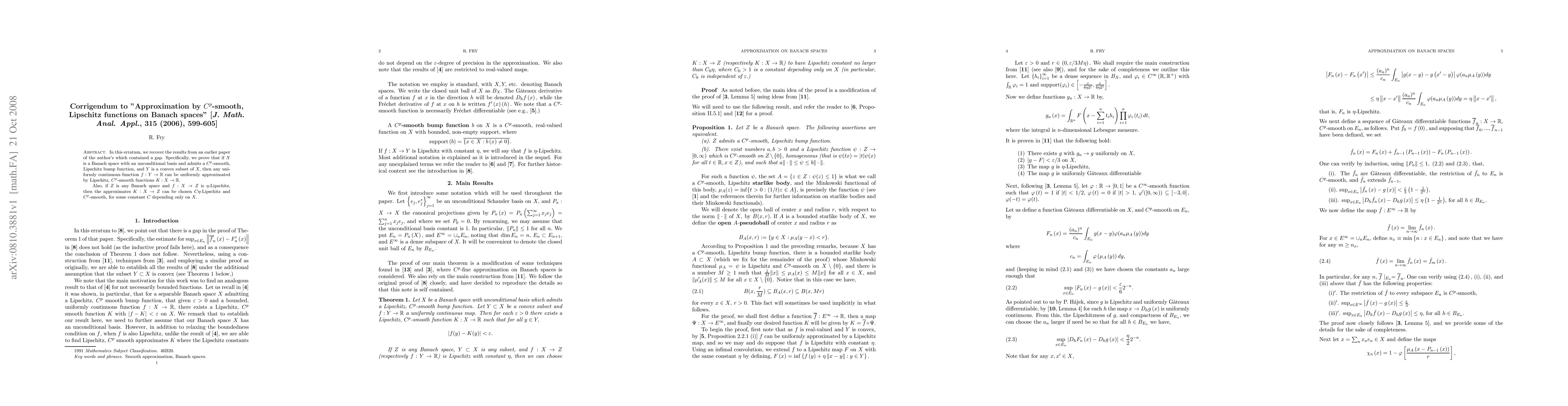 This corrigendum rectifies a previous paper by addressing a gap in the results, proving that uniformly continuous functions on convex subsets of Banach spaces with an unconditional basis and a C^{p}-smooth, Lipschitz bump function can be uniformly approximated by Lipschitz, C^{p}-smooth functions. Additionally, it shows that Lipschitz functions between Banach spaces can be approximated by CL-Lipschitz and C^{p}-smooth functions.