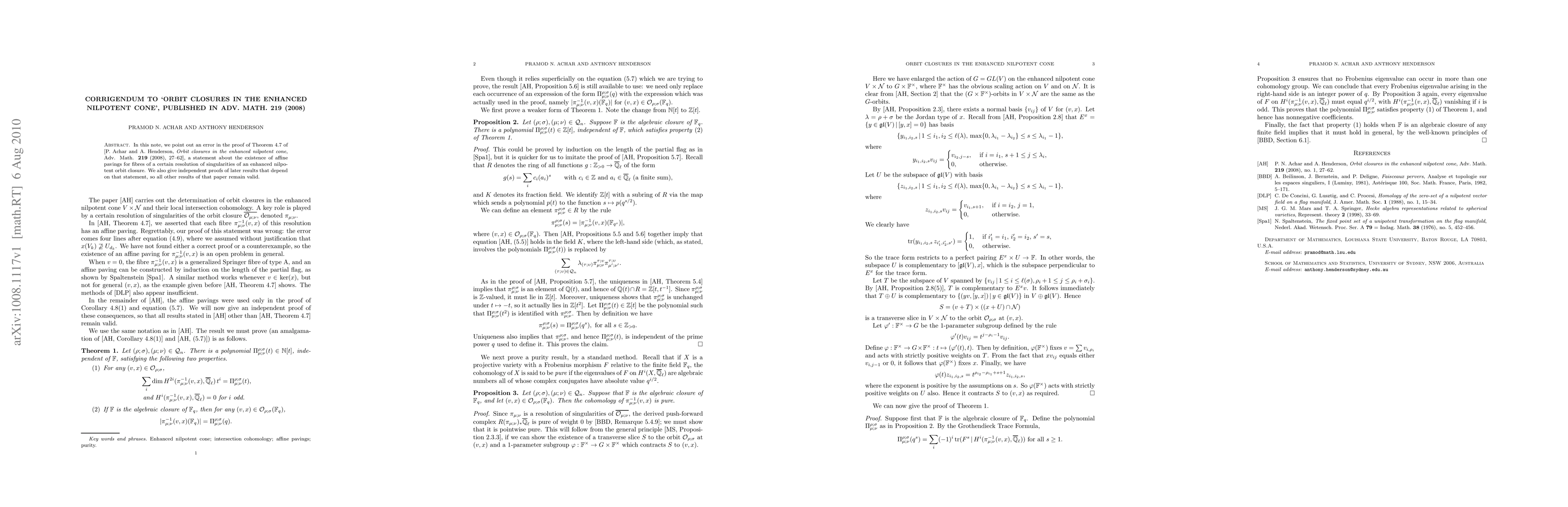 In this note, we point out an error in the proof of Theorem 4.7 of [P. Achar and A.~Henderson, `Orbit closures in the enhanced nilpotent cone', Adv. Math. 219 (2008), 27-62], a statement about the existence of affine pavings for fibres of a certain resolution of singularities of an enhanced nilpotent orbit closure. We also give independent proofs of later results that depend on that statement, so all other results of that paper remain valid.