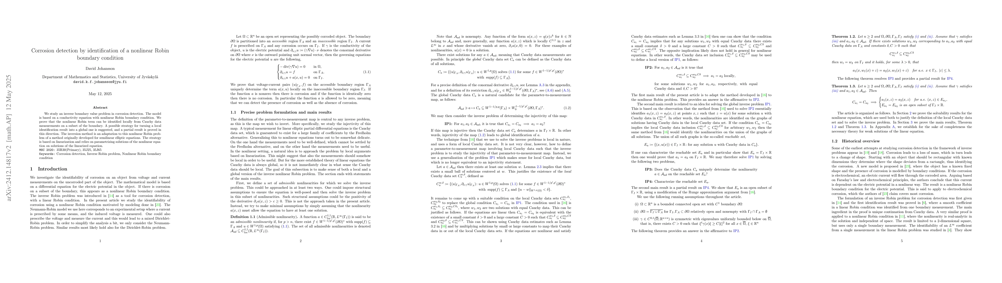 This research investigates an inverse problem for corrosion detection using a conductivity equation with a nonlinear Robin boundary condition. It demonstrates local identification of the nonlinear Robin term from boundary Cauchy data and proposes a strategy to extend this to global identification, partially validated through adaptation of a method for semilinear elliptic equations.