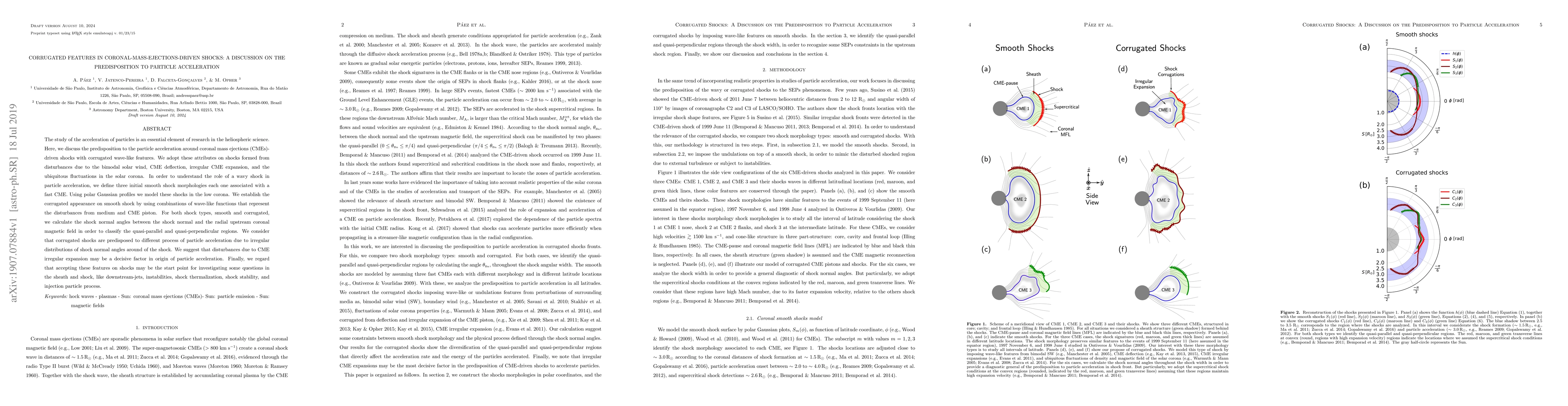 This paper investigates how corrugated wave-like features in coronal mass ejections (CMEs)-driven shocks influence particle acceleration. It models smooth and corrugated shock morphologies, finding that corrugated shocks, due to their irregular shock normal angles, may be more predisposed to particle acceleration processes.