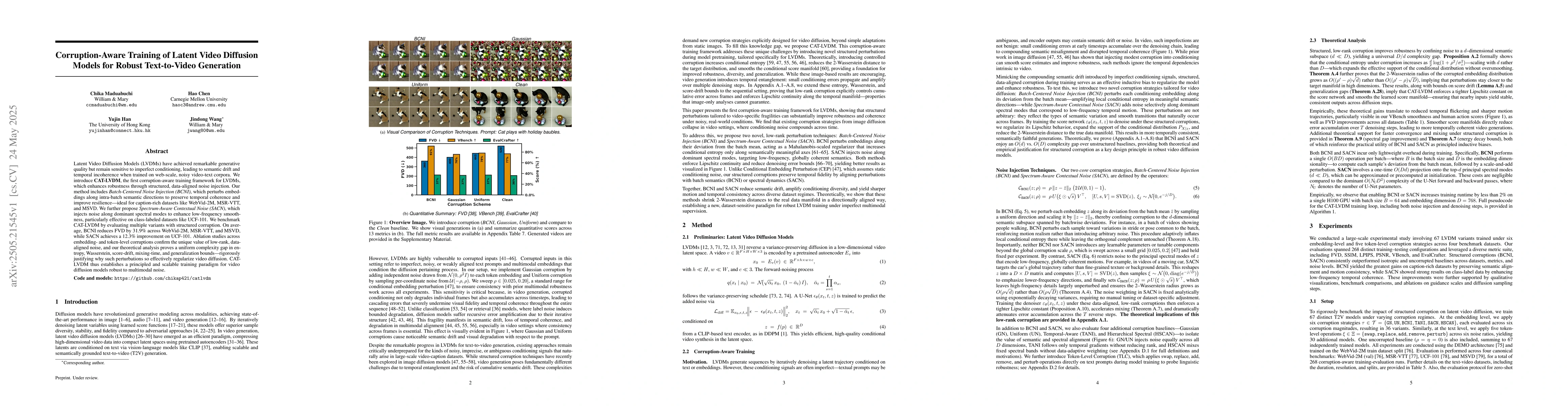This paper introduces CAT-LVDM, a corruption-aware training framework for robust text-to-video generation, achieving 31.9% reduction in FVD on web-scale datasets.