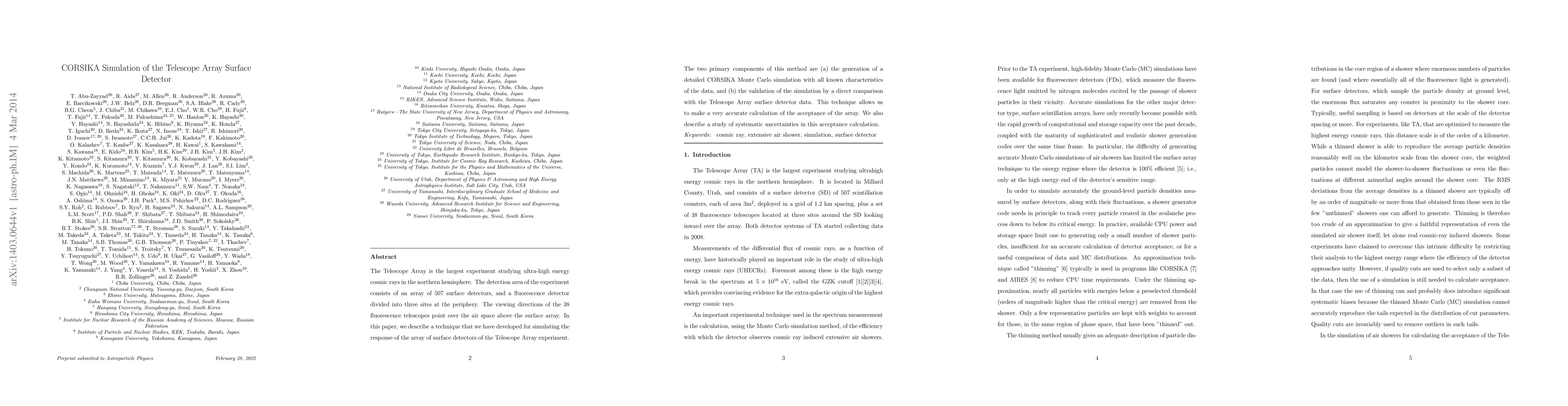 This paper details a CORSIKA Monte Carlo simulation technique for the Telescope Array's surface detector array, validated by comparing simulated results with actual detector data, allowing for precise acceptance calculations and systematic uncertainty studies.