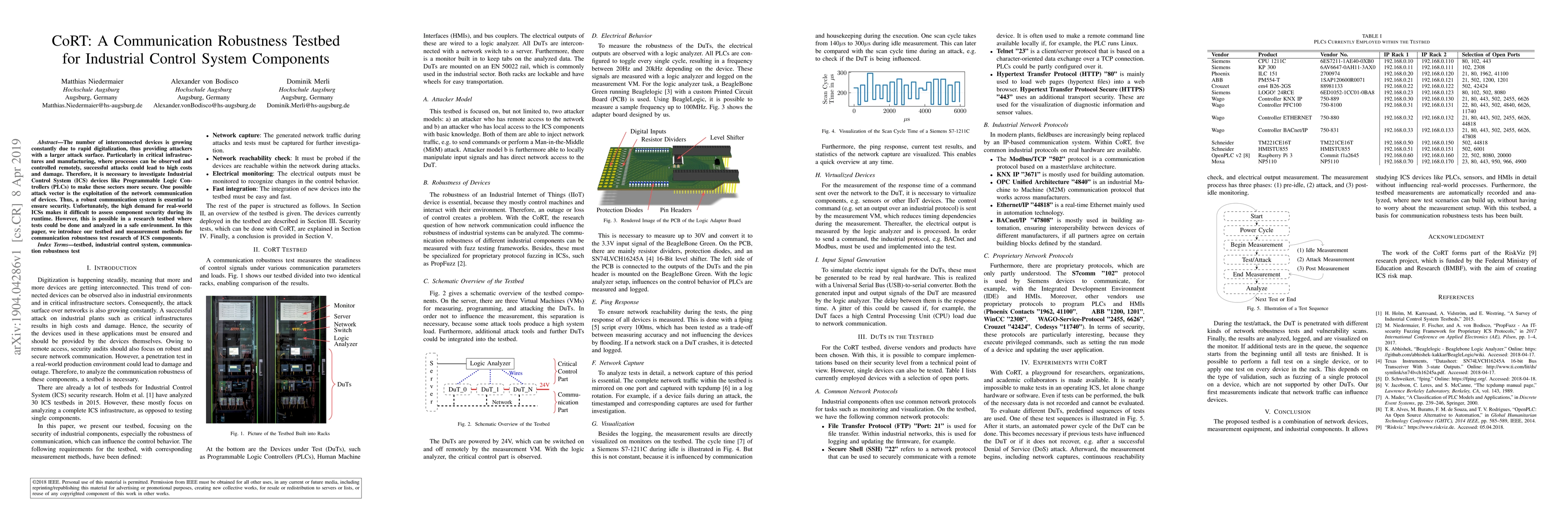 This paper presents a Communication Robustness Testbed (CoRT) designed to evaluate the security of Industrial Control System (ICS) components, particularly focusing on network communication vulnerabilities. The testbed aims to provide a safe environment for testing and analyzing the robustness of ICS devices like Programmable Logic Controllers (PLCs) to ensure enhanced security in critical infrastructures.