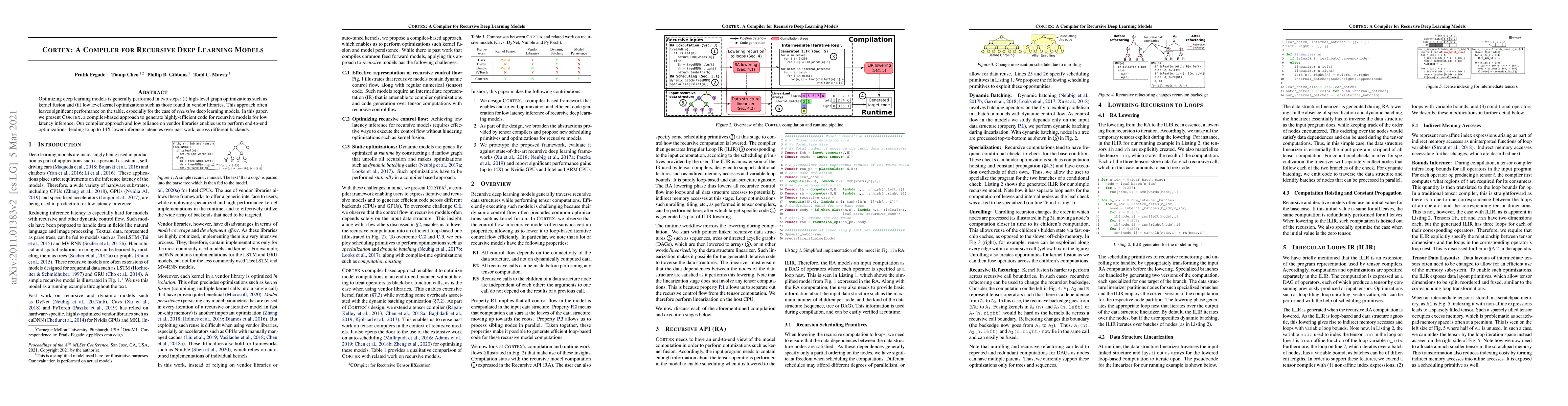 Cortex is a compiler designed to optimize recursive deep learning models by performing end-to-end optimizations, resulting in up to 14X lower inference latencies compared to previous methods, without heavy reliance on vendor libraries.