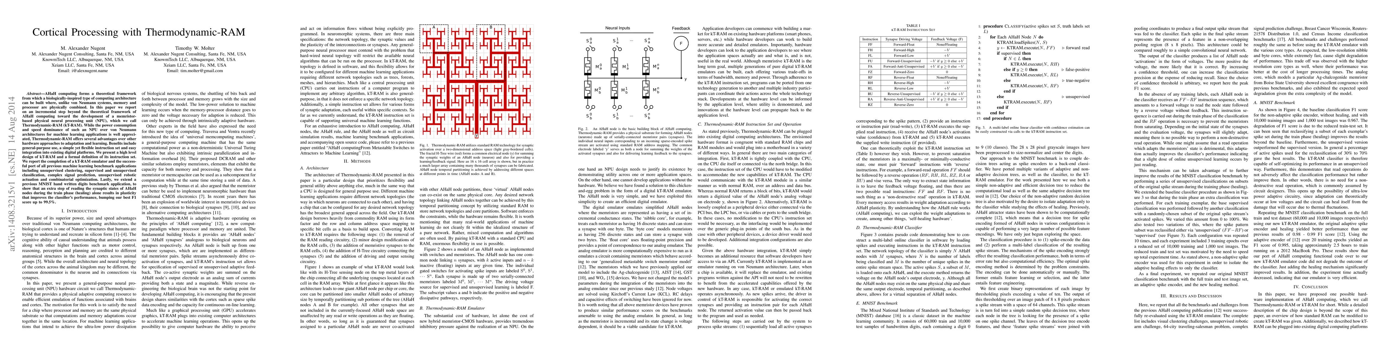 This paper introduces Thermodynamic-RAM (kT-RAM), a biologically-inspired computing architecture that combines memory and processor. It presents a high-level design, instruction set, and an emulator for kT-RAM. The research successfully ported various machine learning benchmarks, achieving high performance in tasks like classification and prediction. An additional 'healing' phase during training improves MNIST digit classification accuracy to 99.5%.