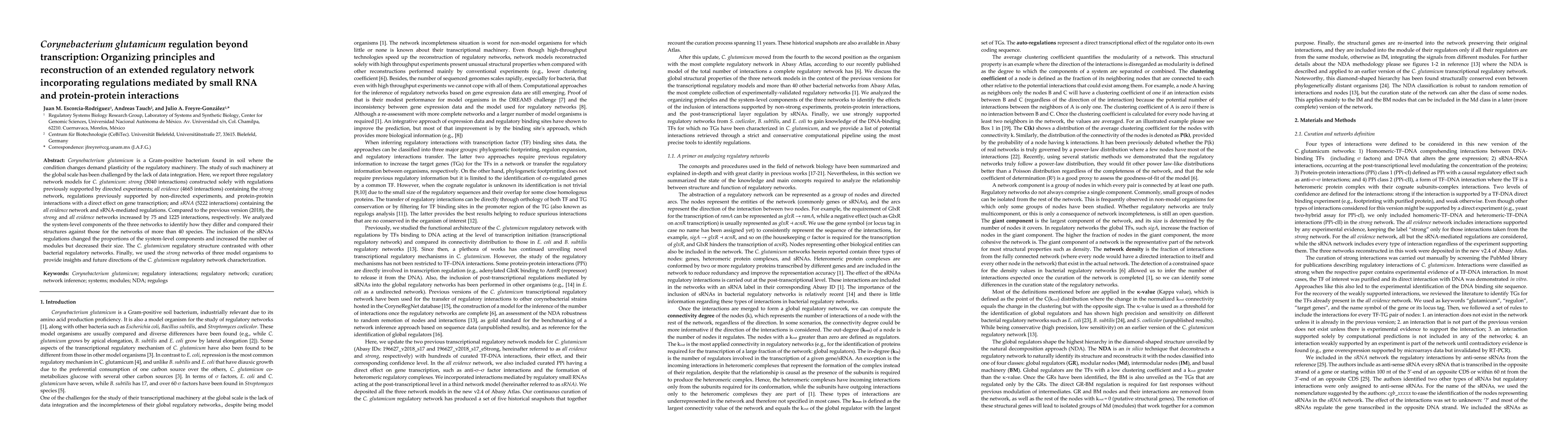 This study reconstructs an extended regulatory network for Corynebacterium glutamicum, incorporating small RNA and protein-protein interactions, revealing a significant increase in regulatory interactions and contrasting regulatory structures compared to other bacterial species. The inclusion of small RNA regulations alters the network's modular structure.