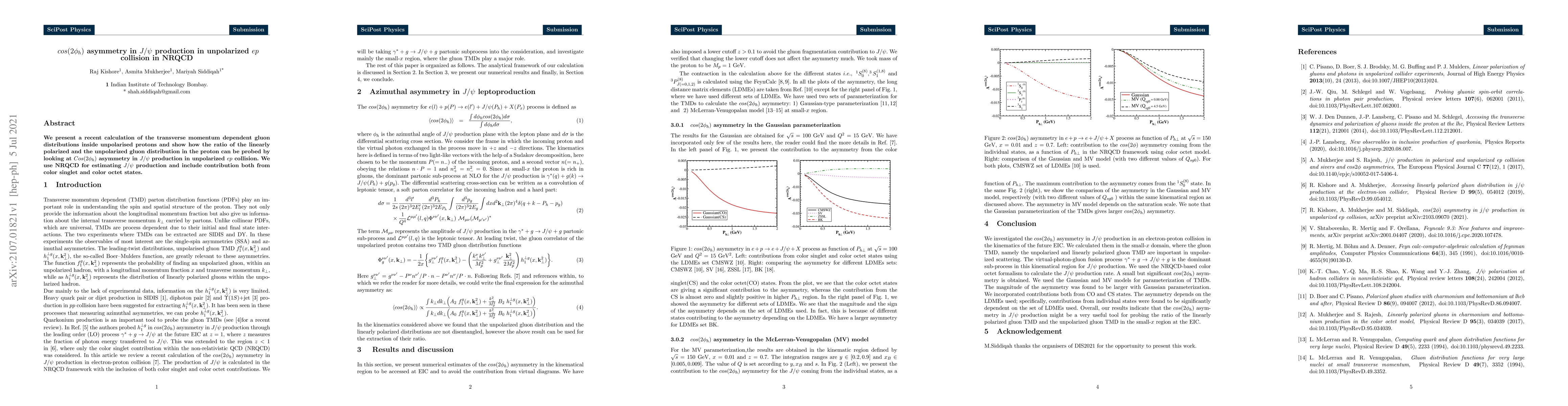 We present a recent calculation of the transverse momentum dependent gluon distributions inside unpolarised protons and show how the ratio of the linearly polarized and the unpolarized gluon distribution in the proton can be probed by looking at $Cos(2\phi_h)$ asymmetry in $J/\psi$ production in unpolarized $ep$ collision. We use NRQCD for estimating $J/\psi$ production and include contributions both from color singlet and color octet states.