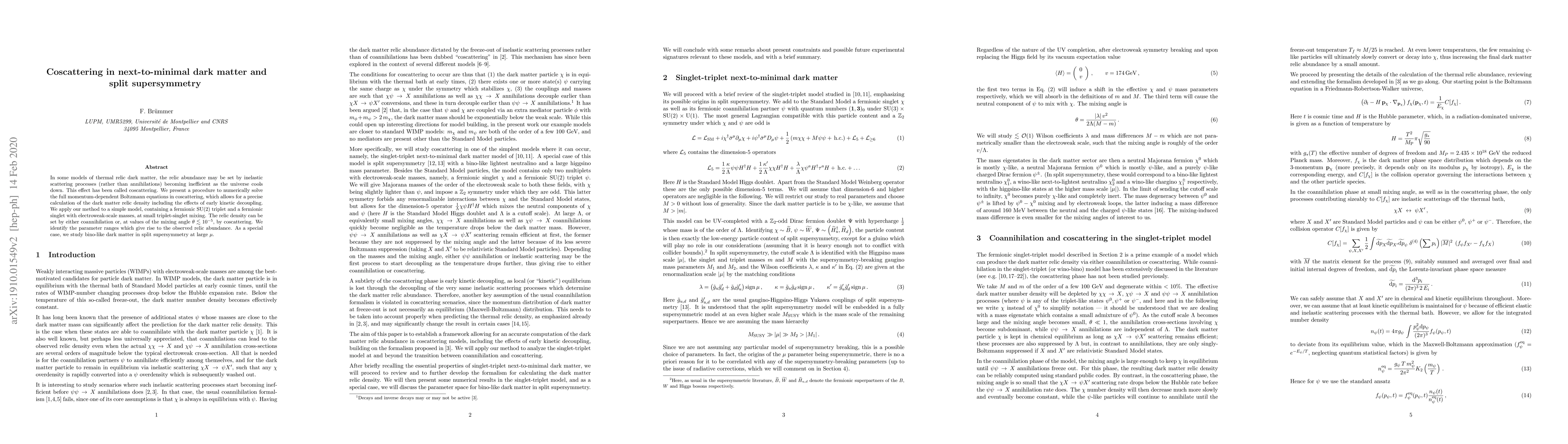 This paper develops a numerical method to solve momentum-dependent Boltzmann equations for coscattering in thermal relic dark matter models, applying it to a model with SU(2) triplet and singlet fermions. It identifies parameter ranges where coscattering sets the relic density, including a special case for bino-like dark matter in split supersymmetry.