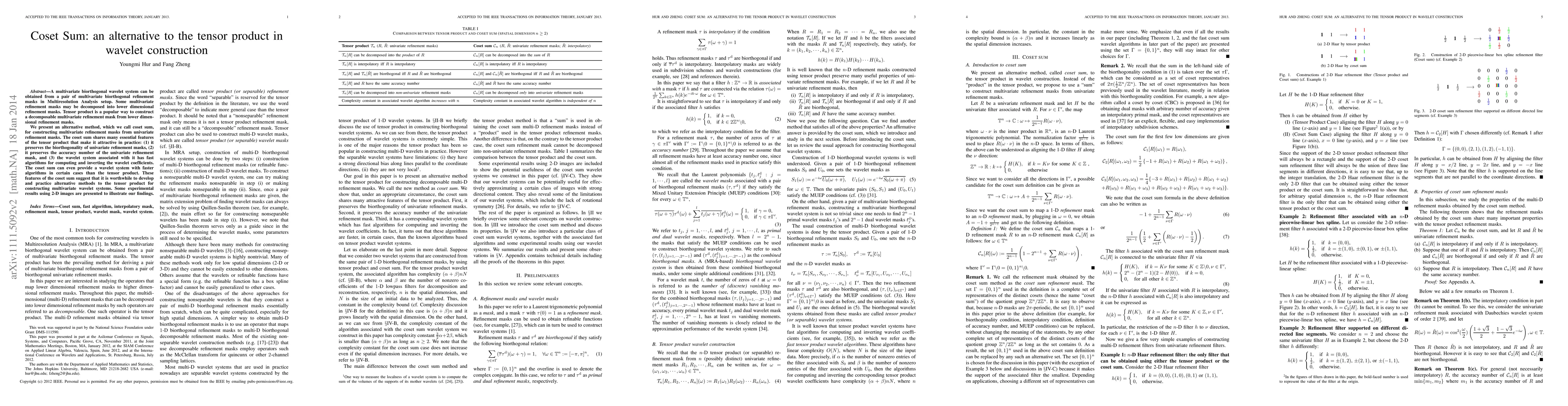 Researchers propose a new method called coset sum to construct multivariate wavelet systems from univariate refinement masks, offering advantages over the tensor product method in terms of efficiency and accuracy.