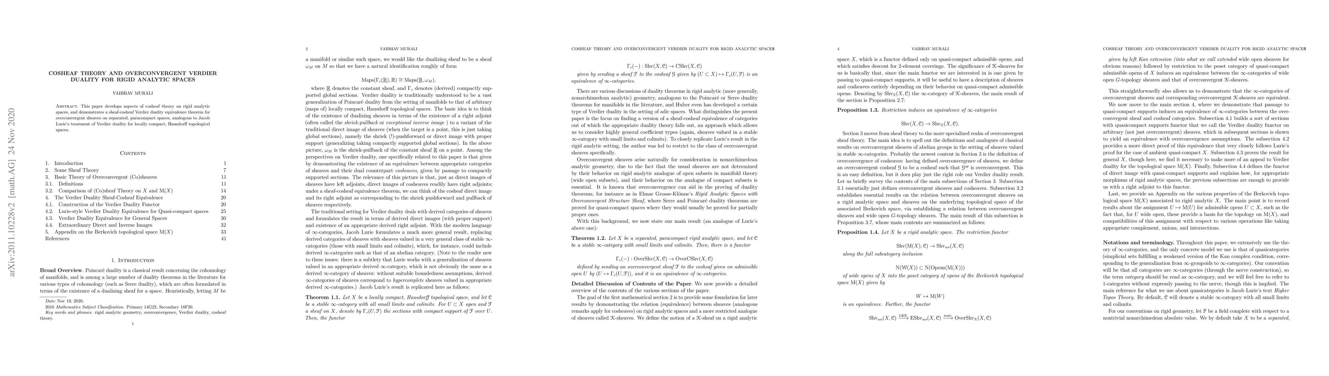 This paper explores cosheaf theory on rigid analytic spaces and establishes a sheaf-cosheaf Verdier duality theorem for overconvergent sheaves, paralleling Jacob Lurie's work on Verdier duality in topology.