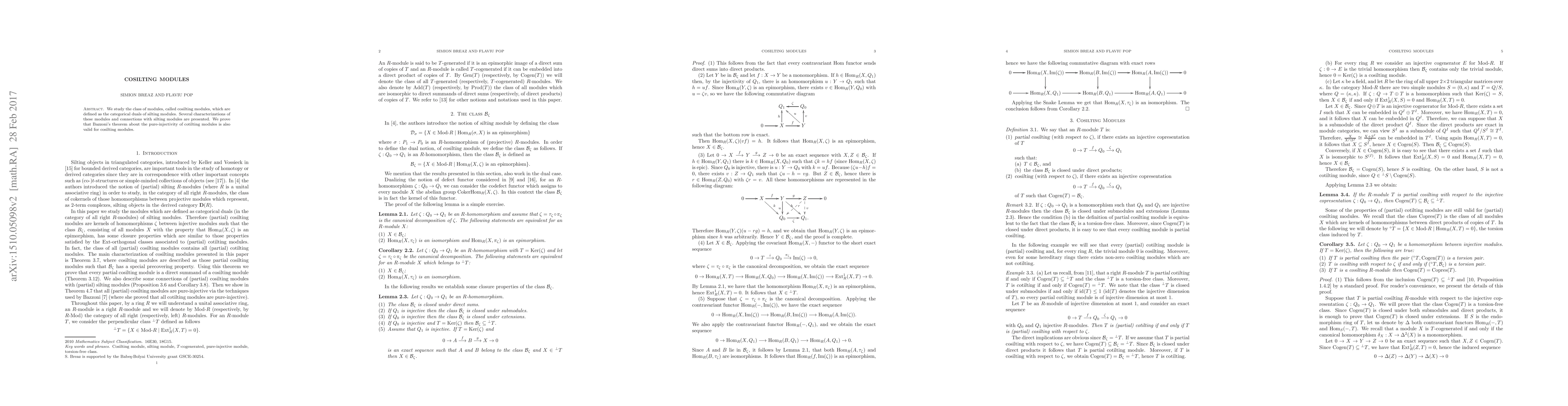 Summary: This paper explores cosilting modules, the dual counterparts of silting modules, providing their characterizations and connections to silting modules. It establishes that Bazzoni's theorem on the pure-injectivity of cotilting modules holds true for cosilting modules as well.