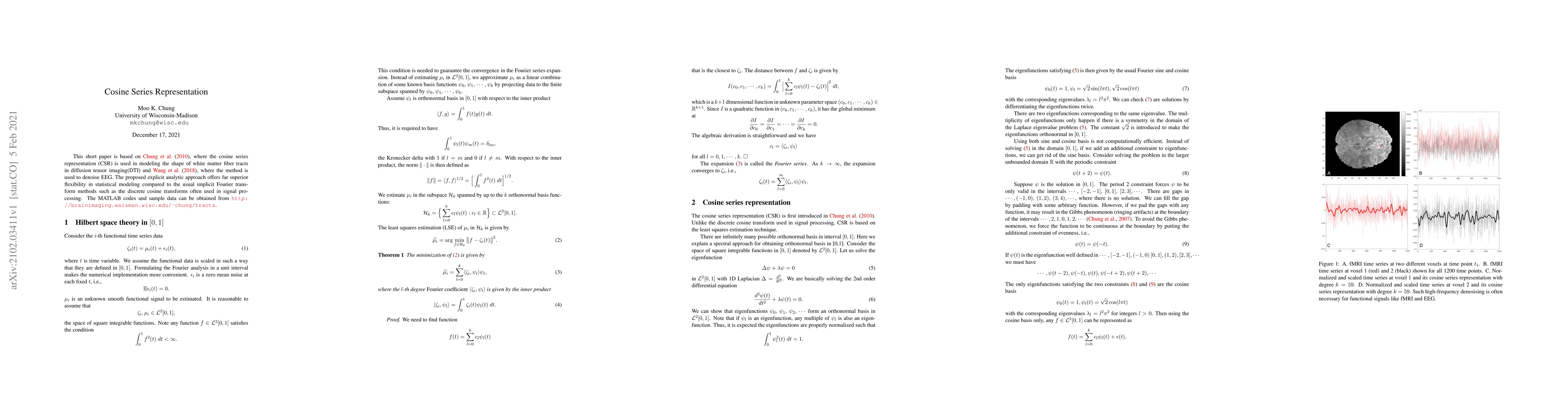 This short paper is based on Chung et al. (2010), where the cosine series representation (CSR) is used in modeling the shape of white matter fiber tracts in diffusion tensor imaging(DTI) and Wang et al. (2018), where the method is used to denoise EEG. The proposed explicit analytic approach offers far superior flexibility in statistical modeling compared to the usual implicit Fourier transform methods such as the discrete cosine transforms often used in signal processing. The MATLAB codes and sample data can be obtained from http://brainimaging.waisman.wisc.edu/~chung/tracts.
