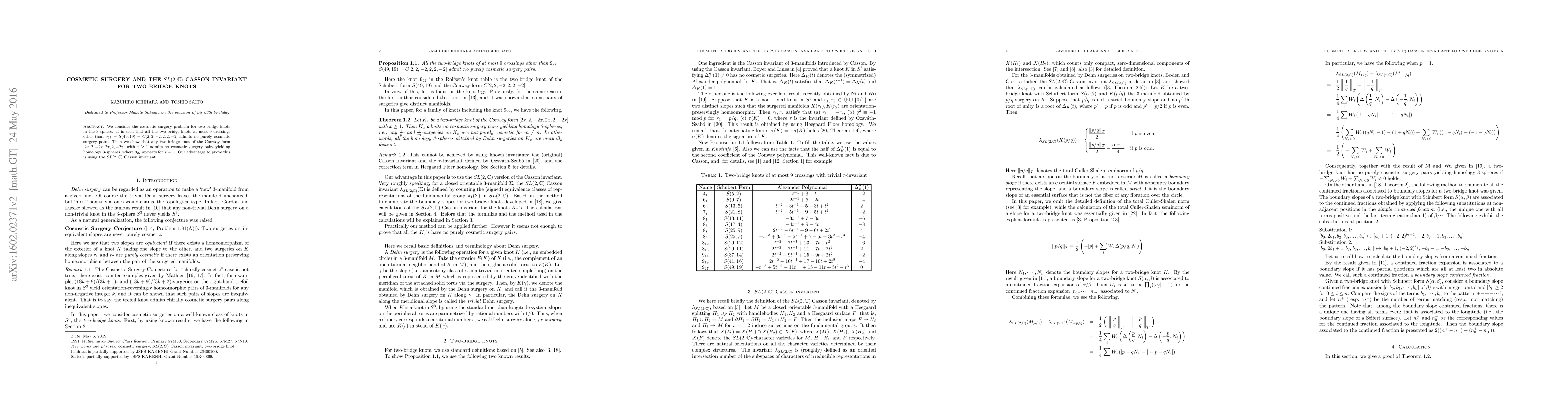 This paper investigates cosmetic surgery on two-bridge knots in the 3-sphere, demonstrating that most knots with up to 9 crossings, excluding $9_{27}$, do not allow purely cosmetic surgery pairs. It further proves that knots of the form $[2x,2,-2x,2x,2,-2x]$ with $x \ge 1$ also do not permit cosmetic surgery yielding homology 3-spheres, using the $SL(2,\mathbb{C})$ Casson invariant for the proof.