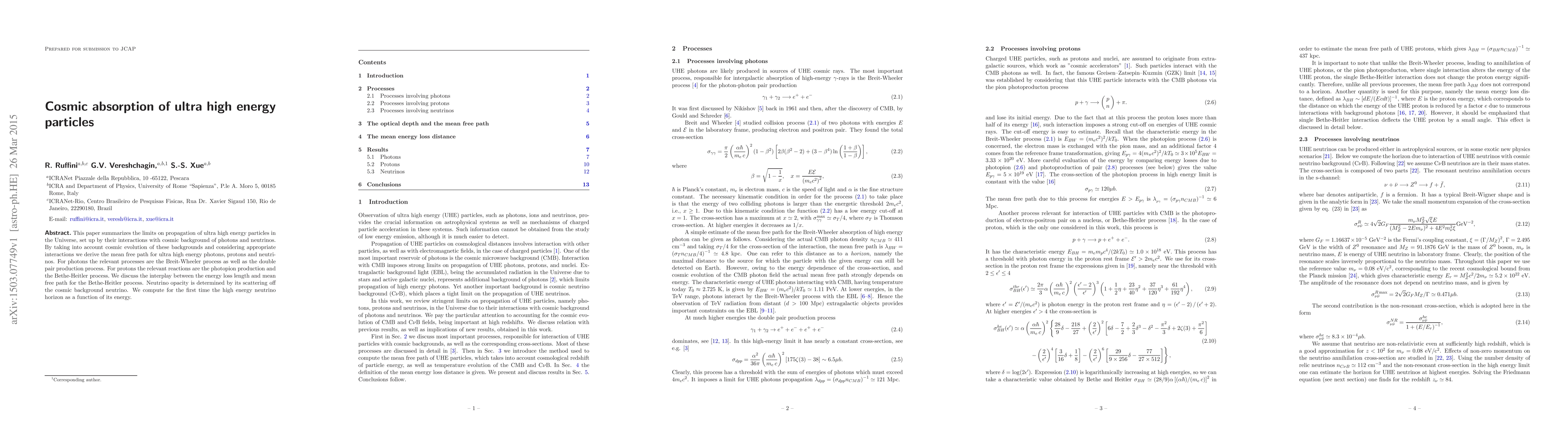 This paper establishes the limits on the propagation of ultra high energy particles in the Universe due to their interactions with cosmic photon and neutrino backgrounds, deriving mean free paths for photons, protons, and neutrinos, and for the first time, calculating the high energy neutrino horizon.