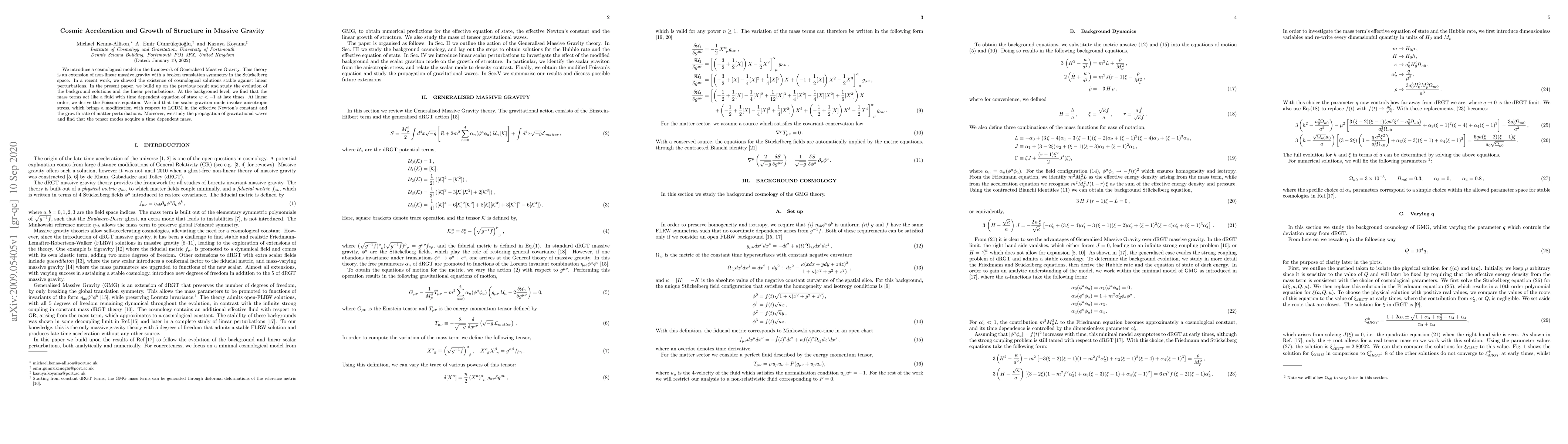 This paper introduces a cosmological model in Generalised Massive Gravity, finding that mass terms act like a fluid with a negative equation of state, and altering the effective Newton's constant and matter perturbation growth rate compared to LCDM.