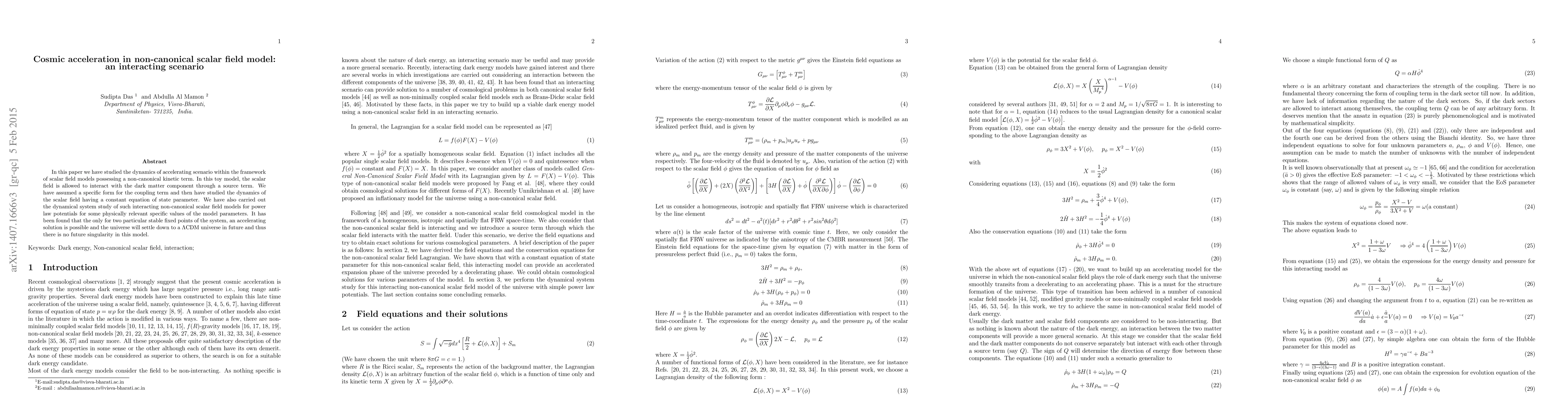 This paper investigates the dynamics of cosmic acceleration in a non-canonical scalar field model where the scalar field interacts with dark matter. The study reveals that only two stable fixed points allow for an accelerating universe, leading to a future $\Lambda$CDM universe without a future singularity.