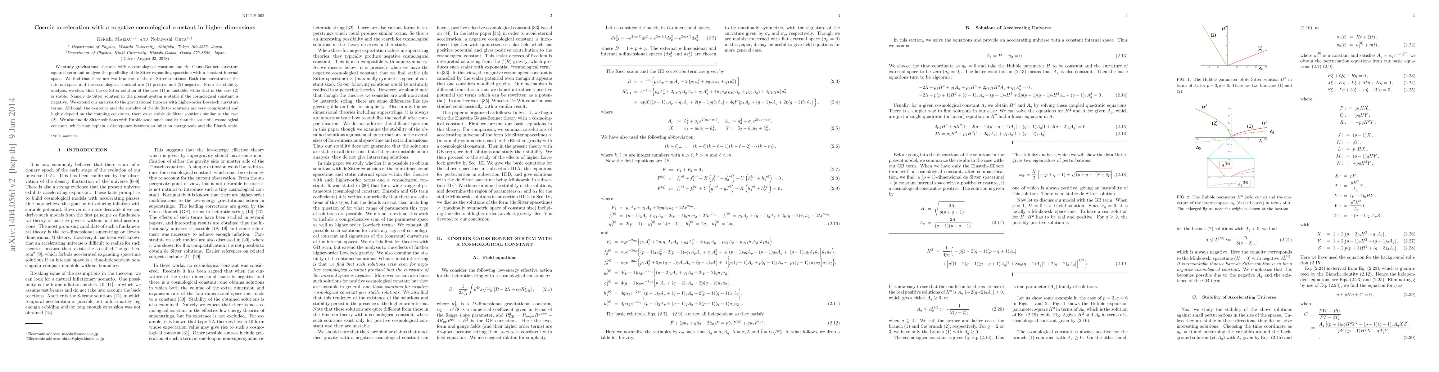 This paper investigates gravitational theories with a negative cosmological constant and higher-order curvature terms, finding stable de Sitter solutions when the cosmological constant is negative. It also explores the implications of these solutions for explaining discrepancies between inflation and Planck scales.