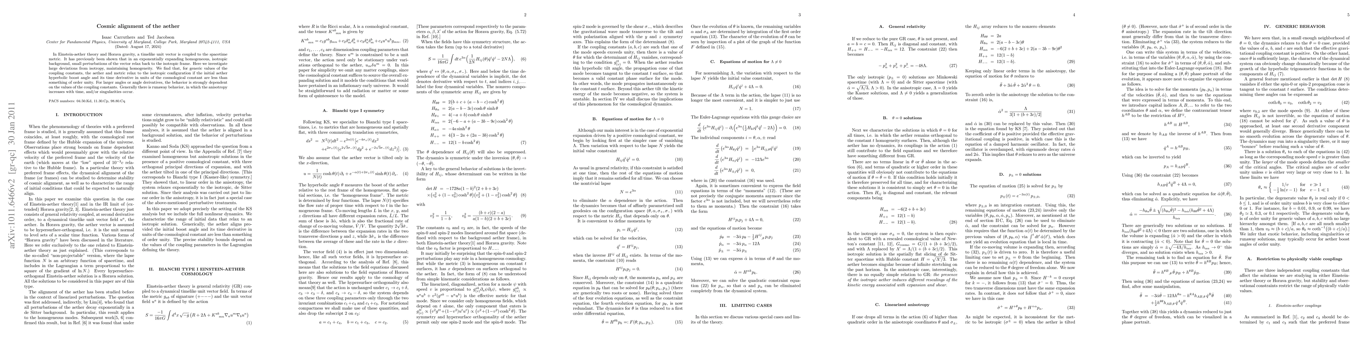 In Einstein-aether theory and Horava gravity, a timelike unit vector is coupled to the spacetime metric. It has previously been shown that in an exponentially expanding homogeneous, isotropic background, small perturbations of the vector relax back to the isotropic frame. Here we investigate large deviations from isotropy, maintaining homogeneity. We find that, for generic values of the coupling constants, the aether and metric relax to the isotropic configuration if the initial aether hyperbolic boost angle and its time derivative in units of the cosmological constant are less than something of order unity. For larger angles or angle derivatives, the behavior is strongly dependent on the values of the coupling constants. Generally there is runaway behavior, in which the anisotropy increases with time, and/or singularities occur.