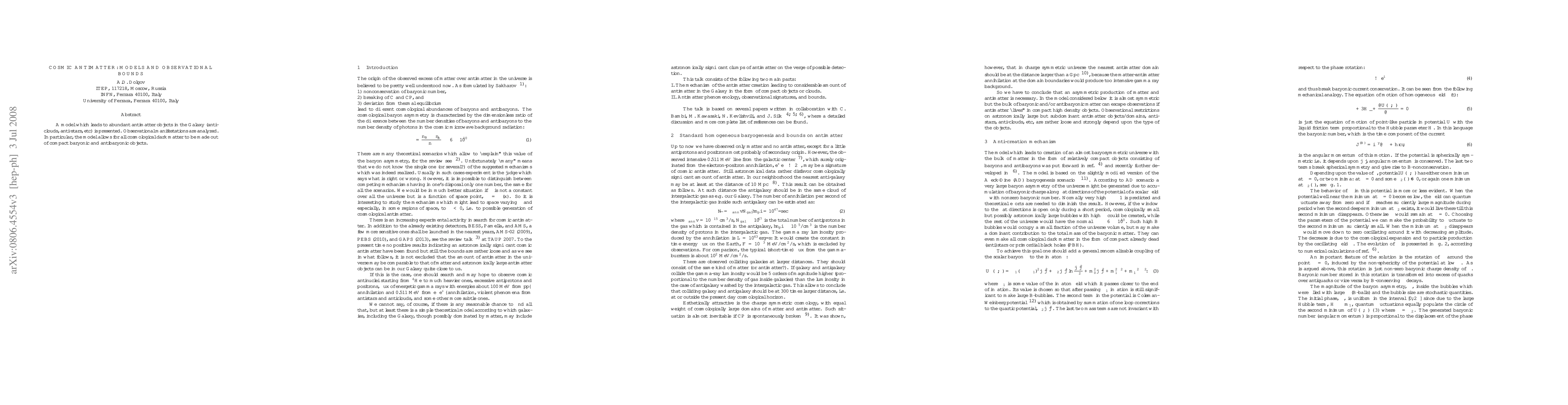 A model which leads to abundant antimatter objects in the Galaxy (anti-clouds, anti-stars, etc) is presented. Observational manifestations are analyzed. In particular, the model allows for all cosmological dark matter to be made out of compact baryonic and antibaryonic objects.