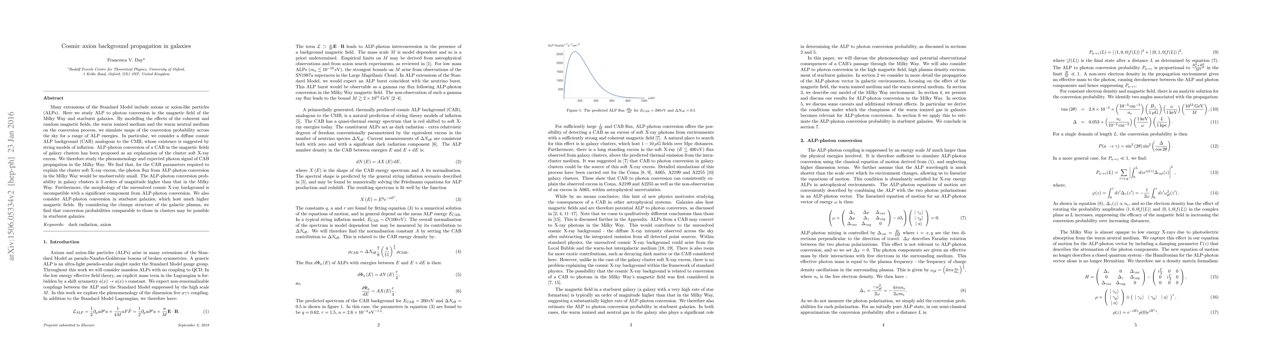 Many extensions of the Standard Model include axions or axion-like particles (ALPs). Here we study ALP to photon conversion in the magnetic field of the Milky Way and starburst galaxies. By modelling the effects of the coherent and random magnetic fields, the warm ionized medium and the warm neutral medium on the conversion process, we simulate maps of the conversion probability across the sky for a range of ALP energies. In particular, we consider a diffuse cosmic ALP background (CAB) analogous to the CMB, whose existence is suggested by string models of inflation. ALP-photon conversion of a CAB in the magnetic fields of galaxy clusters has been proposed as an explanation of the cluster soft X-ray excess. We therefore study the phenomenology and expected photon signal of CAB propagation in the Milky Way. We find that, for the CAB parameters required to explain the cluster soft X-ray excess, the photon flux from ALP-photon conversion in the Milky Way would be unobservably small. The ALP-photon conversion probability in galaxy clusters is 3 orders of magnitude higher than that in the Milky Way. Furthermore, the morphology of the unresolved cosmic X-ray background is incompatible with a significant component from ALP-photon conversion. We also consider ALP-photon conversion in starburst galaxies, which host much higher magnetic fields. By considering the clumpy structure of the galactic plasma, we find that conversion probabilities comparable to those in clusters may be possible in starburst galaxies.
