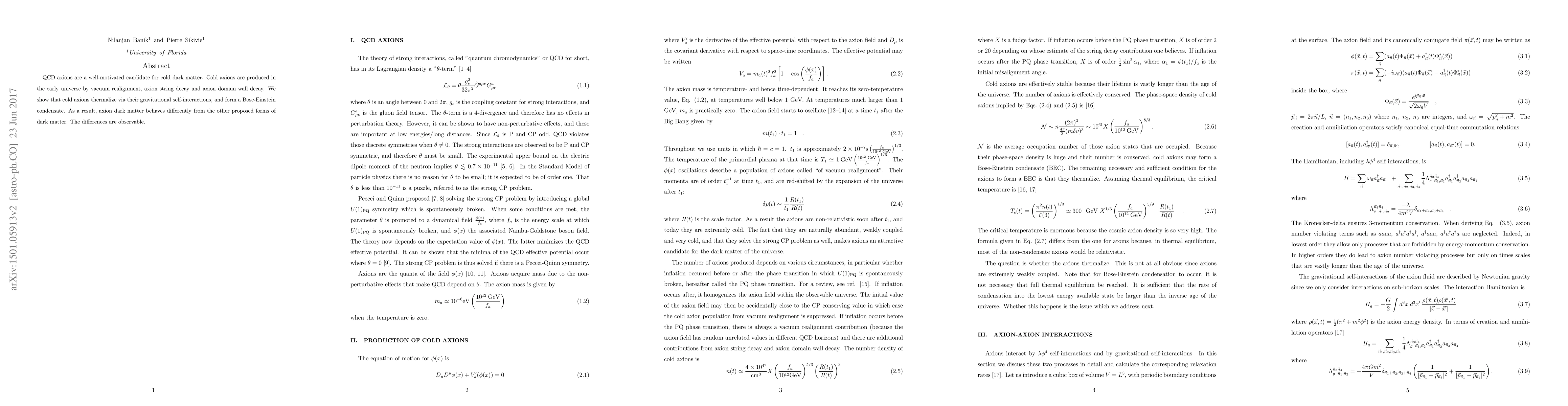 This paper proposes that QCD axions, a candidate for cold dark matter, could form a Bose-Einstein condensate due to gravitational self-interactions, leading to observable differences in their behavior compared to other dark matter forms. The study highlights the unique thermalization mechanisms of these axions in the early universe.