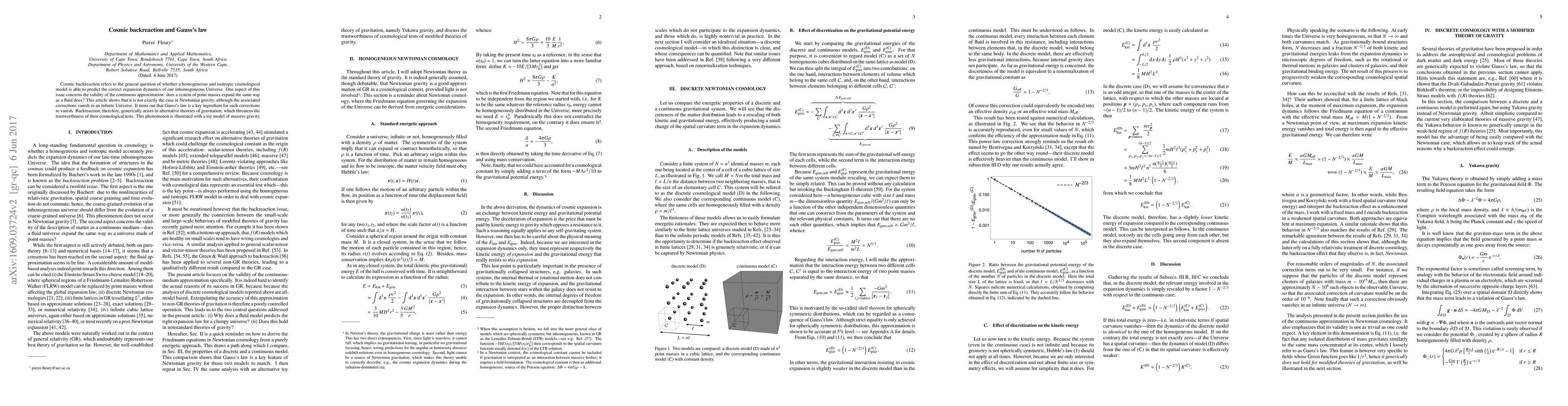 Cosmic backreaction refers to the general question of whether a homogeneous and isotropic cosmological model is able to predict the correct expansion dynamics of our inhomogeneous Universe. One aspect of this issue concerns the validity of the continuous approximation: does a system of point masses expand the same way as a fluid does? This article shows that it is not exactly the case in Newtonian gravity, although the associated corrections vanish in an infinite Universe. It turns out that Gauss's law is a key ingredient for such corrections to vanish. Backreaction, therefore, generically arises in alternative theories of gravitation, which threatens the trustworthiness of their cosmological tests. This phenomenon is illustrated with a toy model of massive gravity.