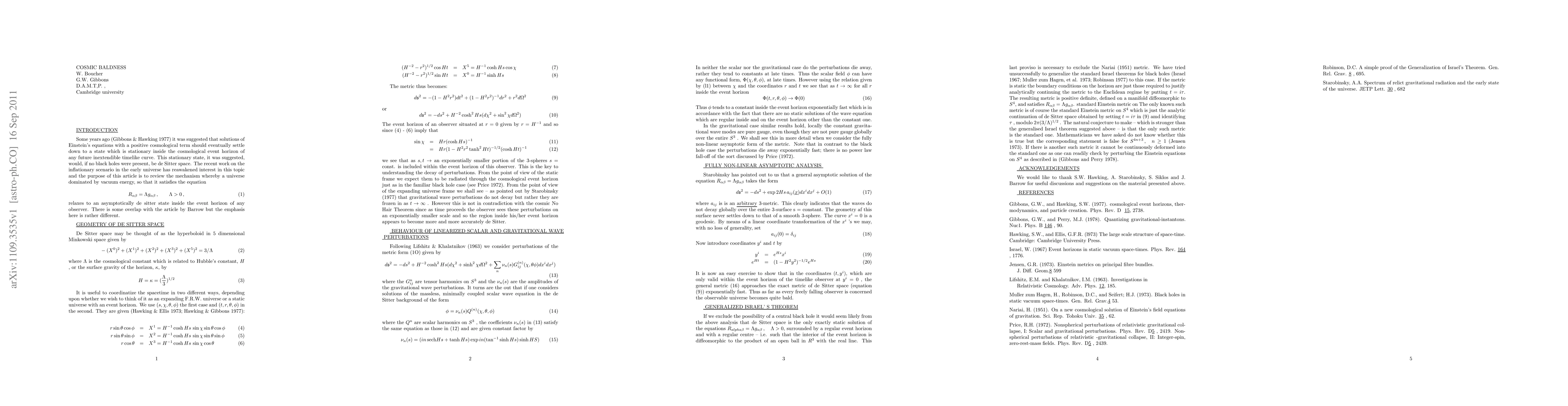 The paper 'Cosmic Baldness' explains how gravitational fluctuations are 'frozen' during inflation, yet spacetime rapidly aligns with de-Sitter metric within any observer's horizon, revealing rapid spatial uniformity in the universe.
