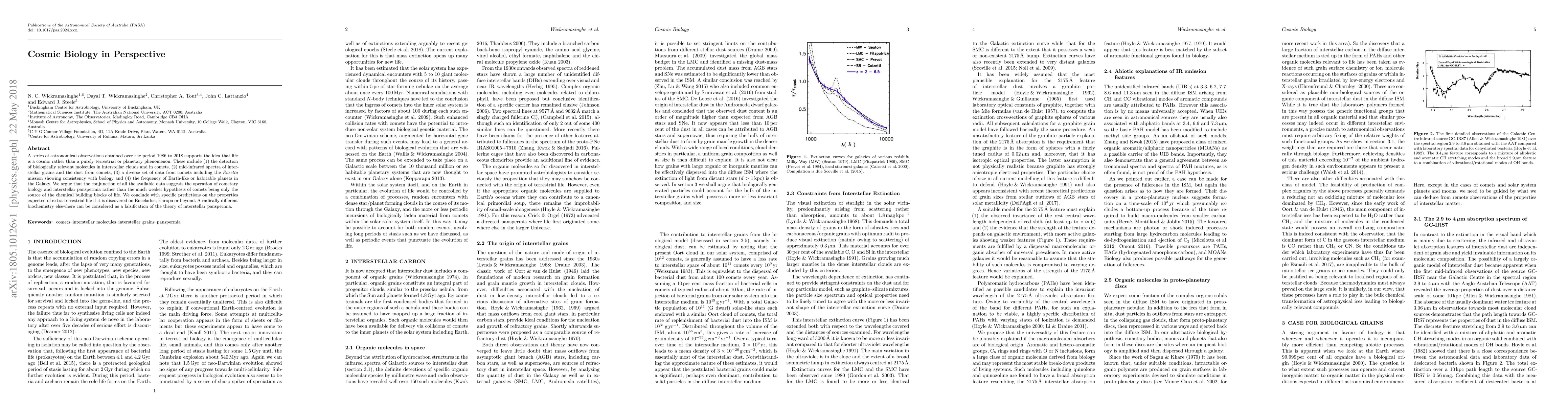 A series of astronomical observations obtained over the period 1986 to 2018 supports the idea that life is a cosmic rather than a purely terrestrial or planetary phenomenon. These include (1) the detection of biologically relevant molecules in interstellar clouds and in comets, (2) mid-infrared spectra of interstellar grains and the dust from comets, (3) a diverse set of data from comets including the Rosetta mission showing consistency with biology and (4) the frequency of Earth-like or habitable planets in the Galaxy. We argue that the conjunction of all the available data suggests the operation of cometary biology and interstellar panspermia rather than the much weaker hypothesis of comets being only the source of the chemical building blocks of life. We conclude with specific predictions on the properties expected of extra-terrestrial life if it is discovered on Enceladus, Europa or beyond. A radically different biochemistry elsewhere can be considered as a falsification of the theory of interstellar panspermia.
