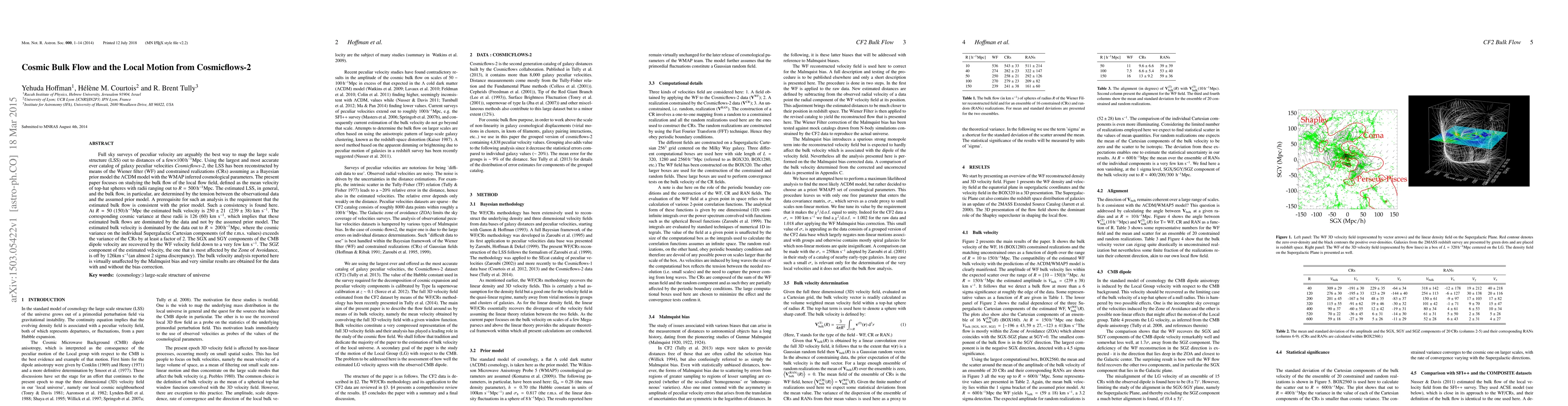 This study uses Cosmicflows-2 data to map large-scale structure out to 100 Mpc/h, finding a local bulk flow velocity of 250 km/s at R=50 Mpc/h, with variations dominated by the data itself.