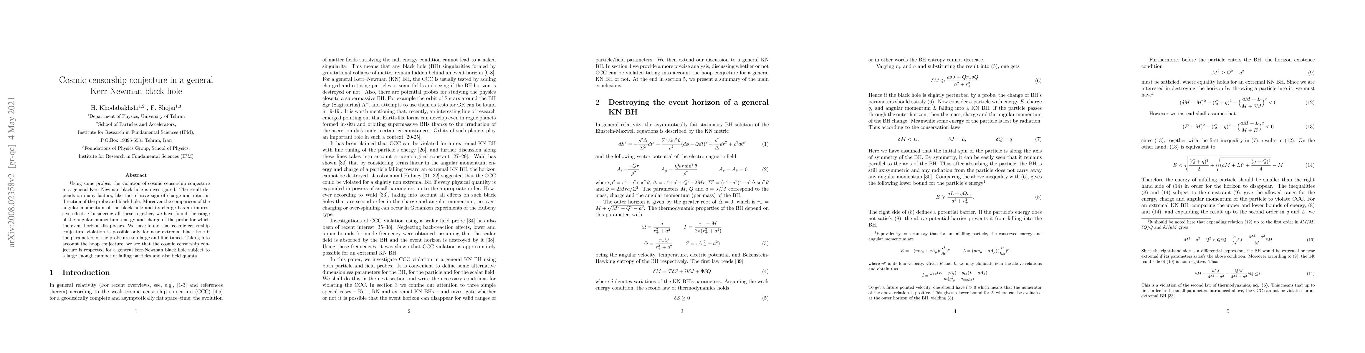The paper presents a detailed analysis of the conditions under which the cosmic censorship conjecture can be violated in Kerr-Newman black holes, incorporating both hoop conjecture and thermodynamic considerations.
