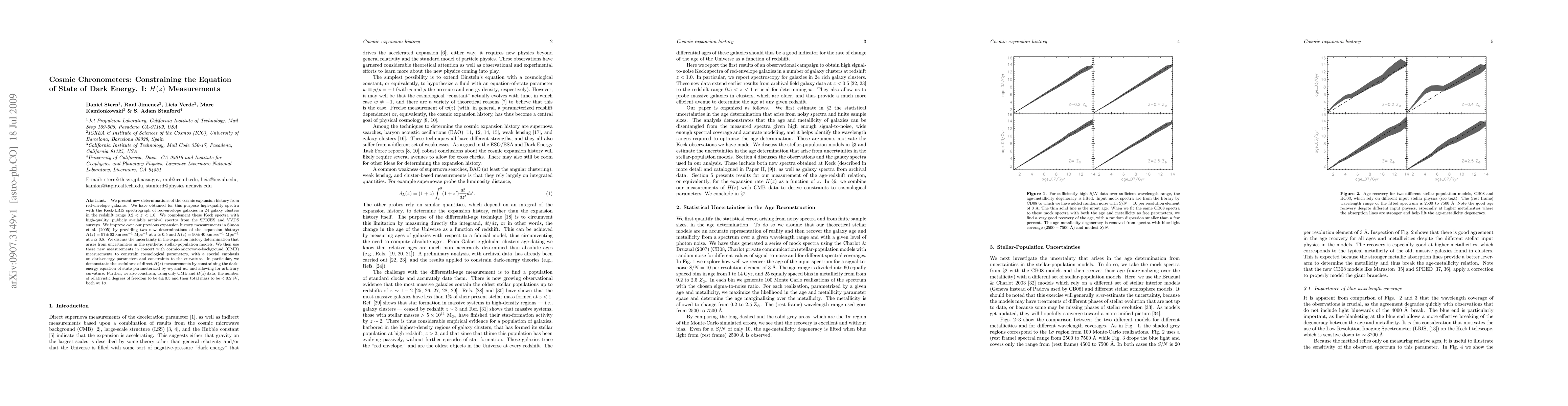 We present new determinations of the cosmic expansion history from red-envelope galaxies. We have obtained for this purpose high-quality spectra with the Keck-LRIS spectrograph of red-envelope galaxies in 24 galaxy clusters in the redshift range 0.2 < z < 1.0. We complement these Keck spectra with high-quality, publicly available archival spectra from the SPICES and VVDS surveys. We improve over our previous expansion history measurements in Simon et al. (2005) by providing two new determinations of the expansion history: H(z) = 97 +- 62 km/sec/Mpc at z = 0.5 and H(z) = 90 +- 40 km/sec/Mpc at z = 0.8. We discuss the uncertainty in the expansion history determination that arises from uncertainties in the synthetic stellar-population models. We then use these new measurements in concert with cosmic-microwave-background (CMB) measurements to constrain cosmological parameters, with a special emphasis on dark-energy parameters and constraints to the curvature. In particular, we demonstrate the usefulness of direct H(z) measurements by constraining the dark- energy equation of state parameterized by w0 and wa and allowing for arbitrary curvature. Further, we also constrain, using only CMB and H(z) data, the number of relativistic degrees of freedom to be 4 +- 0.5 and their total mass to be < 0.2 eV, both at 1-sigma.