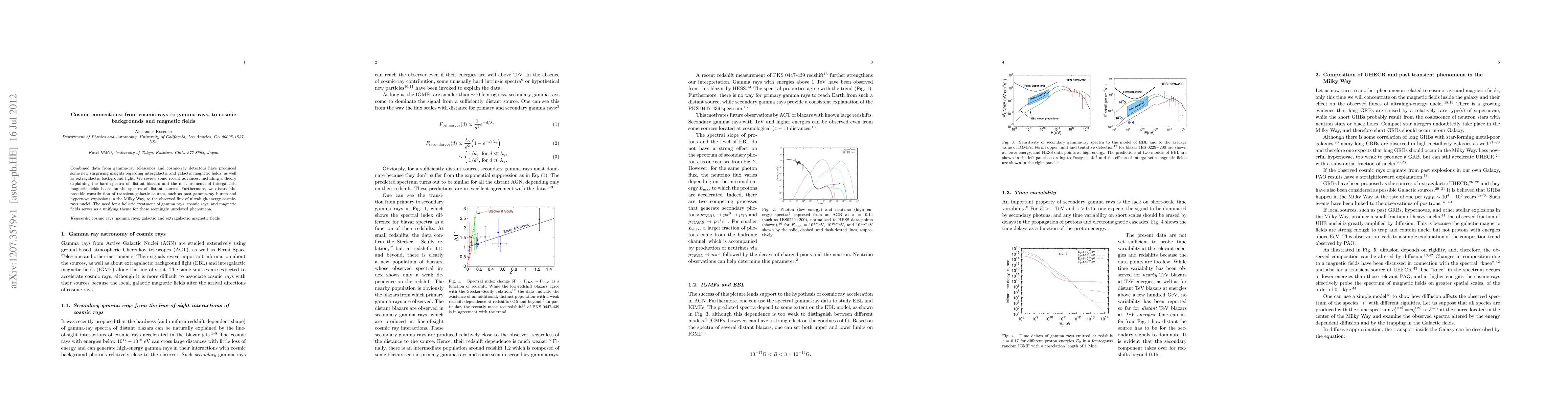 Combined data from gamma-ray telescopes and cosmic-ray detectors have produced some new surprising insights regarding intergalactic and galactic magnetic fields, as well as extragalactic background light. We review some recent advances, including a theory explaining the hard spectra of distant blazars and the measurements of intergalactic magnetic fields based on the spectra of distant sources. Furthermore, we discuss the possible contribution of transient galactic sources, such as past gamma-ray bursts and hypernova explosions in the Milky Way, to the observed flux of ultrahigh-energy cosmic-rays nuclei. The need for a holistic treatment of gamma rays, cosmic rays, and magnetic fields is a unifying theme for these seemingly unrelated phenomena.