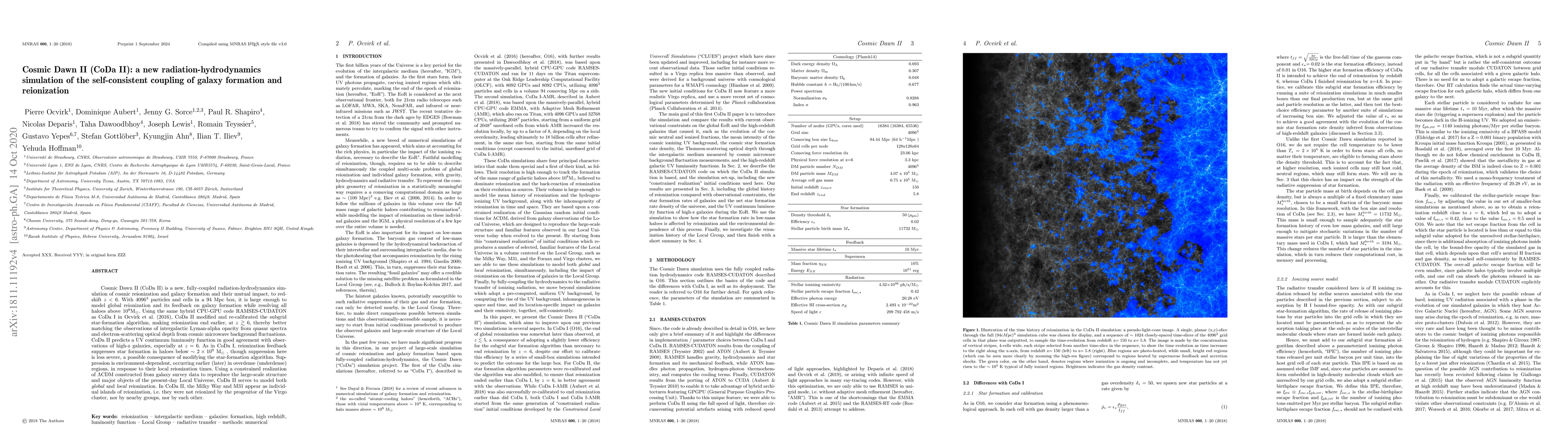 Cosmic Dawn II (CoDa II) is a large-scale radiation-hydrodynamics simulation that models the interplay between galaxy formation and cosmic reionization to redshift $z < 6$. It predicts an earlier reionization end at $z \gtrsim 6$ and shows environment-dependent suppression of star formation in low-mass haloes.
