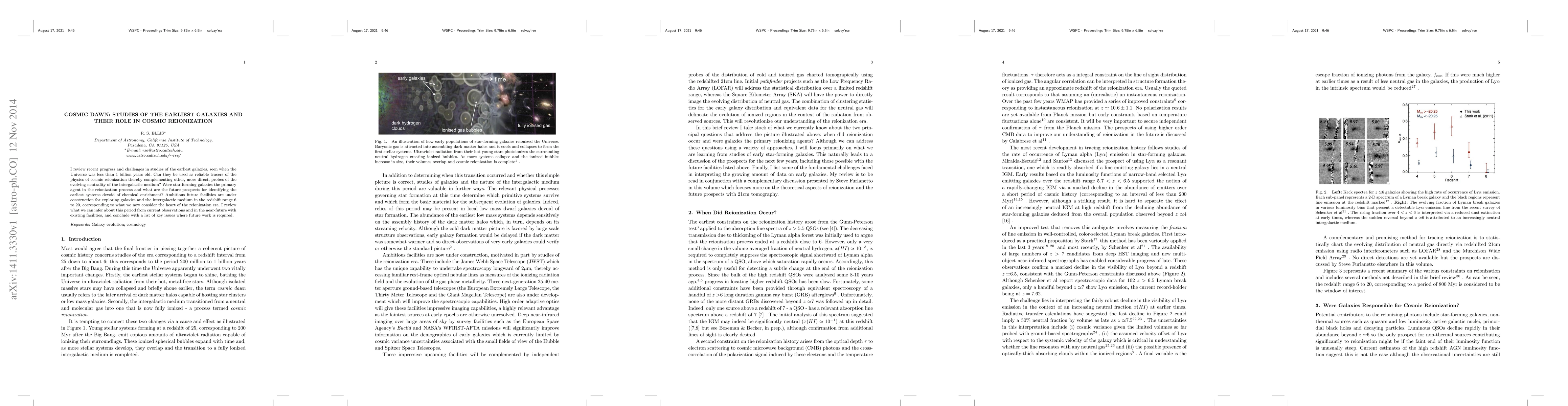 I review recent progress and challenges in studies of the earliest galaxies, seen when the Universe was less than 1 billion years old. Can they be used as reliable tracers of the physics of cosmic reionization thereby complementing other, more direct, probes of the evolving neutrality of the intergalactic medium? Were star-forming galaxies the primary agent in the reionization process and what are the future prospects for identifying the earliest systems devoid of chemical enrichment? Ambitious future facilities are under construction for exploring galaxies and the intergalactic medium in the redshift range 6 to 20, corresponding to what we now consider the heart of the reionization era. I review what we can infer about this period from current observations and in the near-future with existing facilities, and conclude with a list of key issues where future work is required.