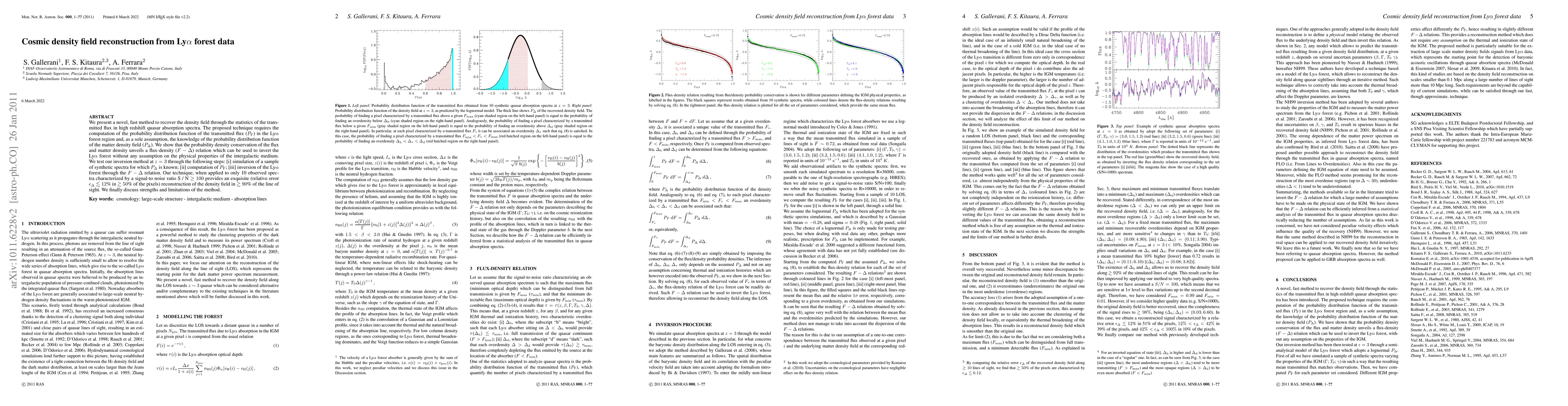 We present a novel, fast method to recover the density field through the statistics of the transmitted flux in high redshift quasar absorption spectra. The proposed technique requires the computation of the probability distribution function of the transmitted flux (P_F) in the Ly-alpha forest region and, as a sole assumption, the knowledge of the probability distribution function of the matter density field (P_Delta). We show that the probability density conservation of the flux and matter density unveils a flux-density (F-Delta) relation which can be used to invert the Ly-alpha forest without any assumption on the physical properties of the intergalactic medium. We test our inversion method at z=3 through the following steps: [i] simulation of a sample of synthetic spectra for which P_Delta is known; [ii] computation of P_F; [iii] inversion of the Ly-alpha forest through the F-Delta relation. Our technique, when applied to only 10 observed spectra characterized by a signal-to noise ratio S/N >= 100 provides an exquisite (relative error epsilon_Delta <~ 12 % in >~ 50 % of the pixels) reconstruction of the density field in >~ 90 % of the line of sight. We finally discuss strengths and limitations of the method.