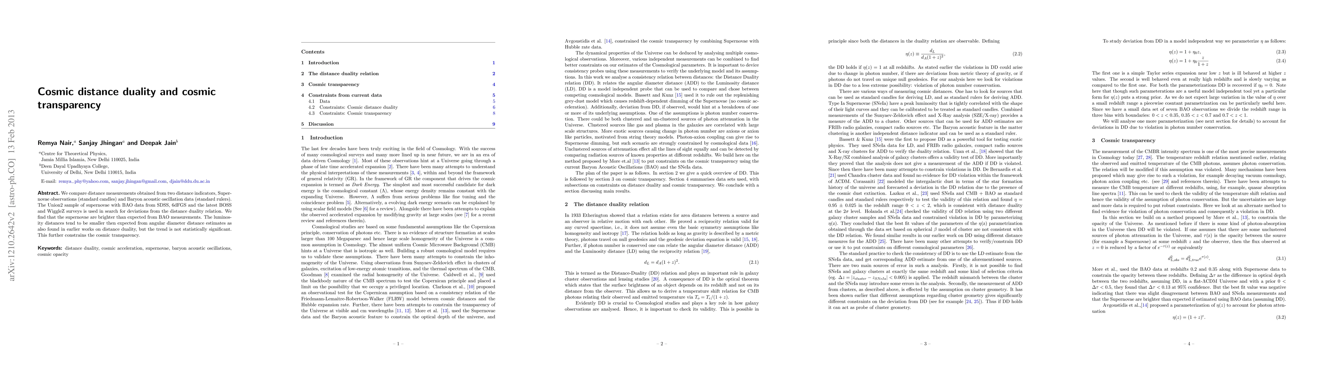 Researchers compare distance measurements from supernovae observations and Baryon acoustic oscillation data, finding that supernovae are brighter than expected from BAO measurements, which further constrains cosmic transparency.