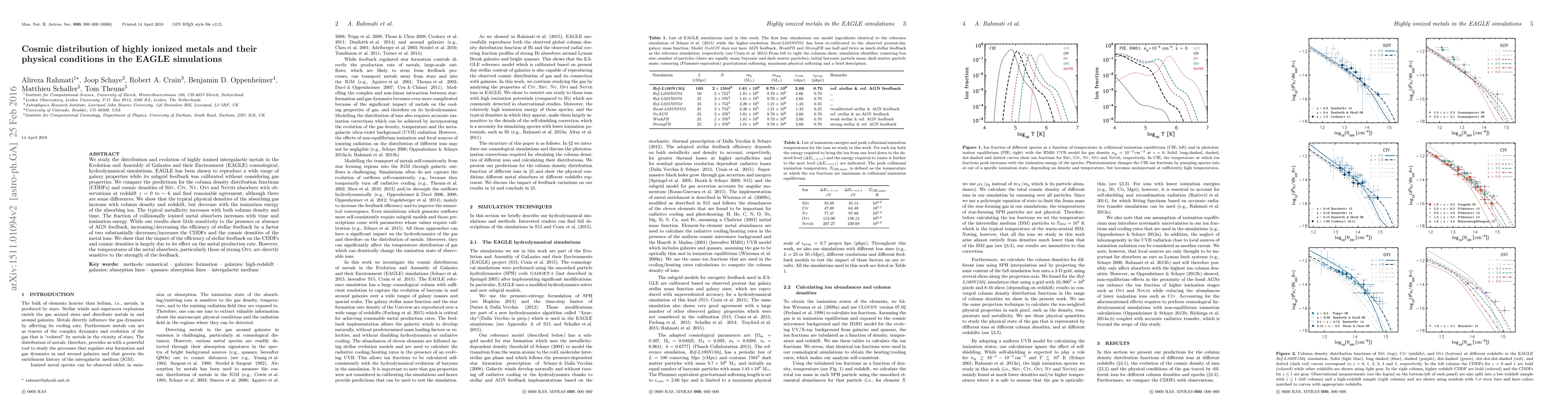 The study uses EAGLE simulations to investigate highly ionized metals in intergalactic space, finding a reasonable agreement with observations at redshifts 0-6 and showing how stellar feedback impacts metal production and absorption rates.